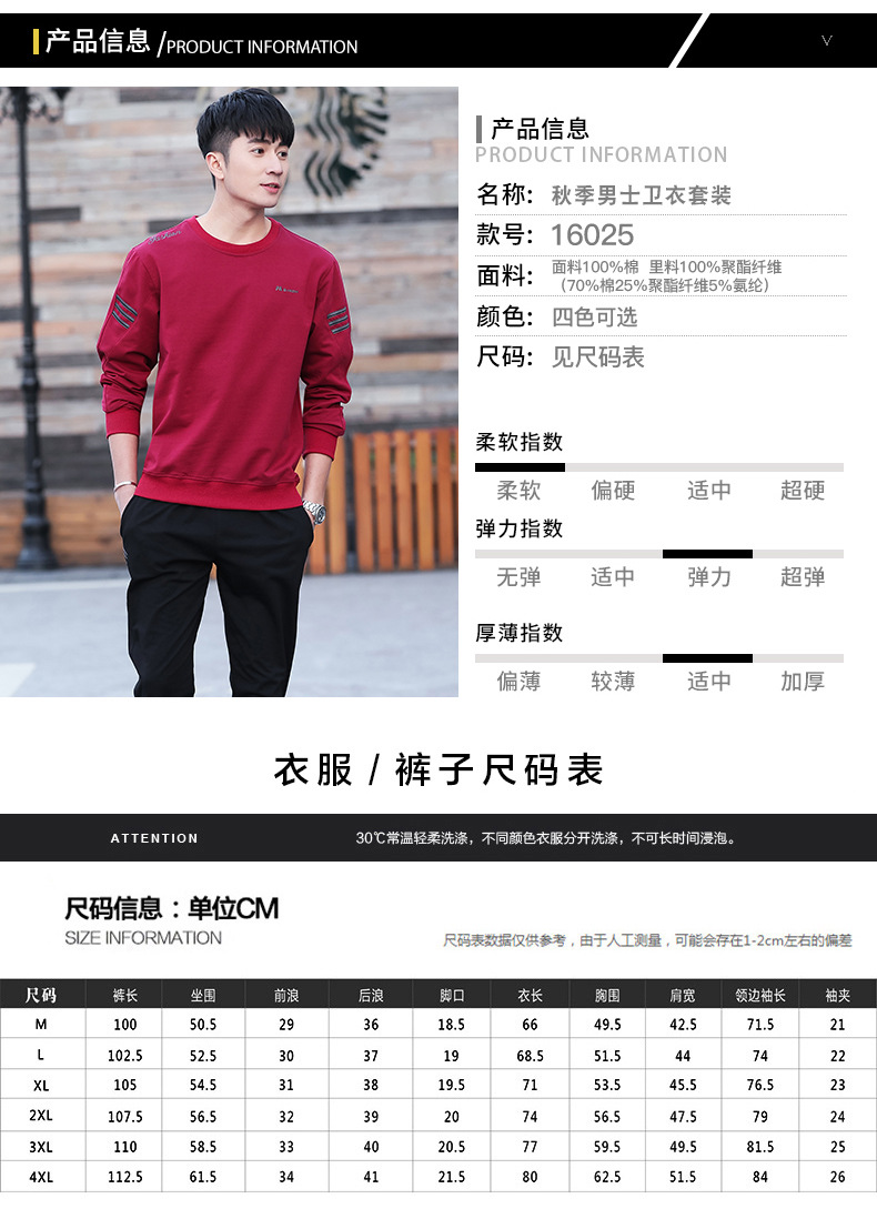 春秋季防棉长袖运动潮流刺绣爆款纯色三条杠跨境圆领卫衣套装男士