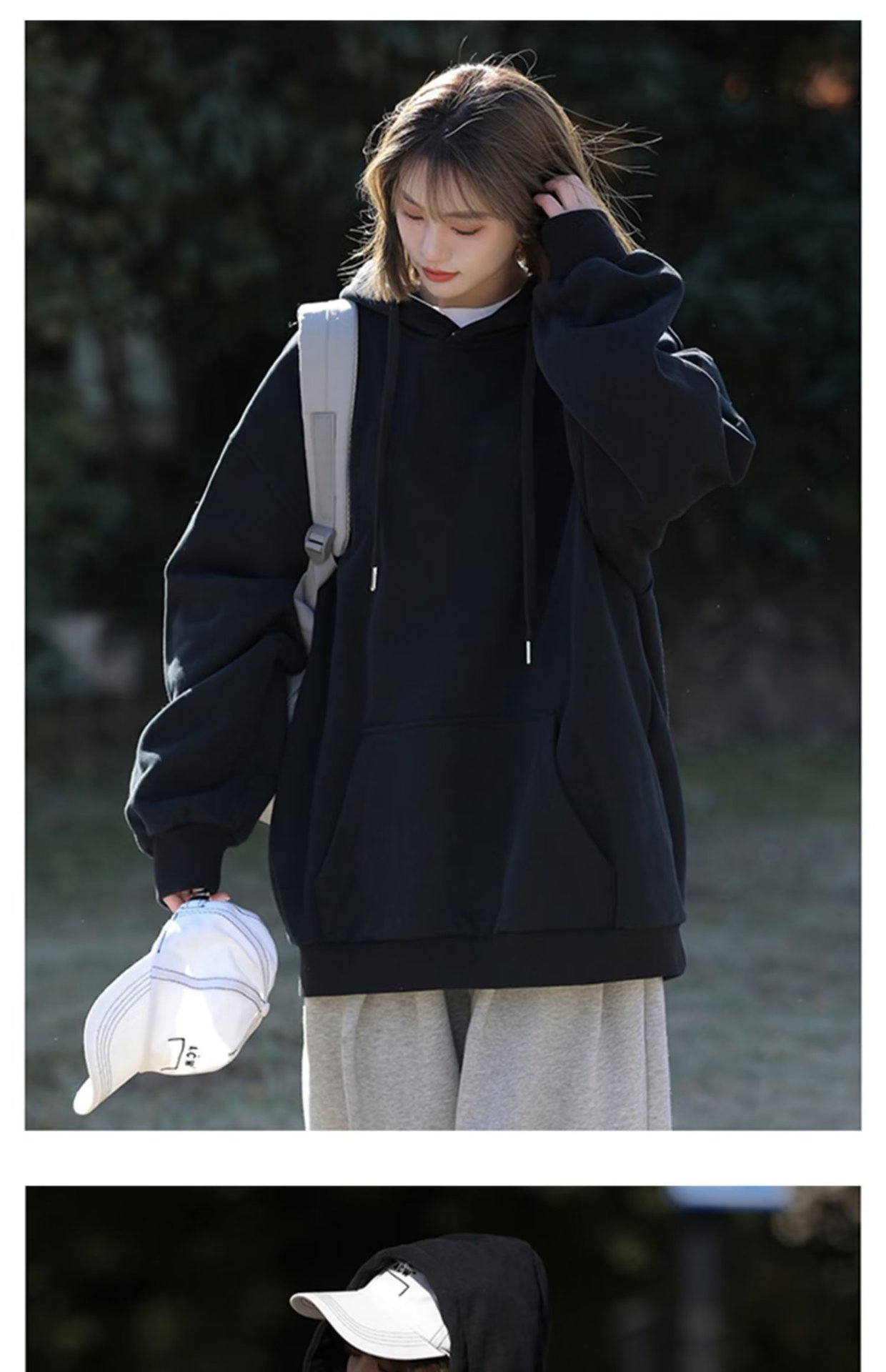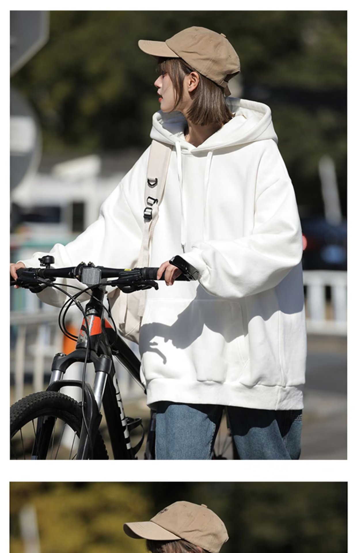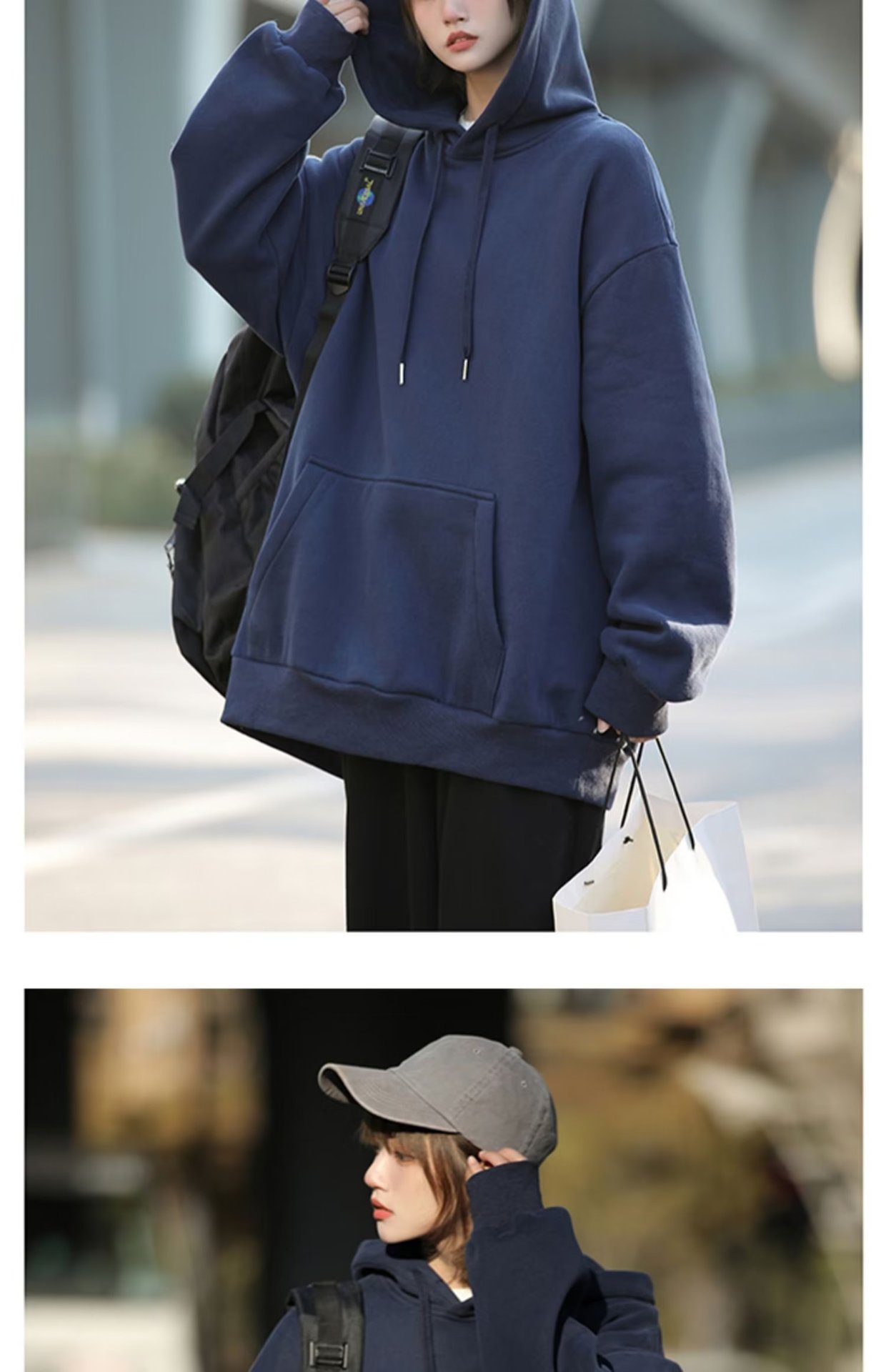 美式复古重磅棕色卫衣男春秋薄款连帽硬挺内搭oversize情侣装外套