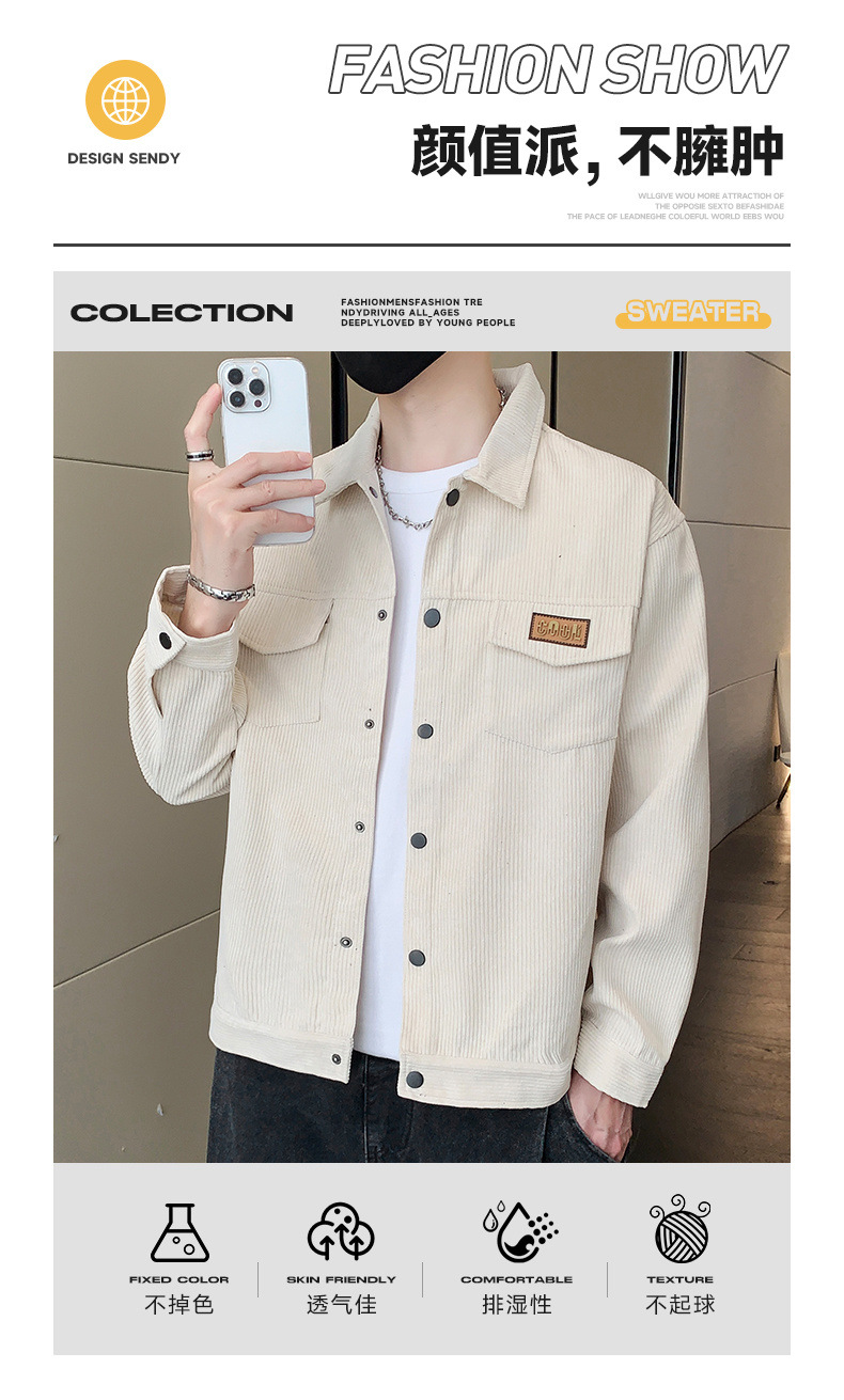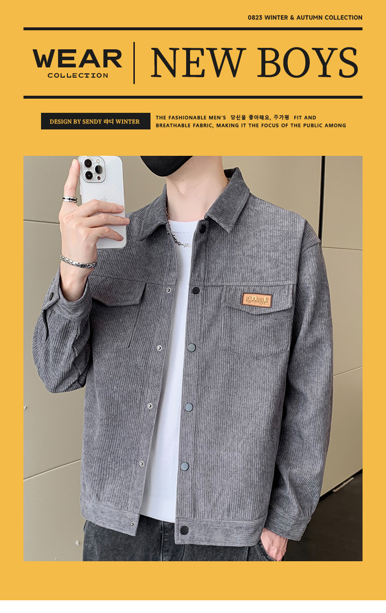 外套男士秋冬潮牌灯芯绒2024新款青少年夹克上衣工装夹克男装潮流
