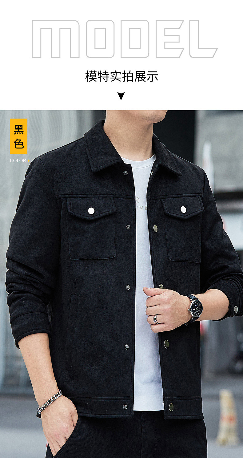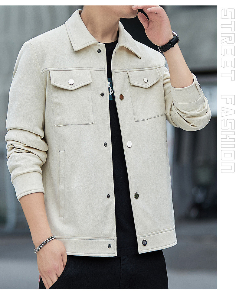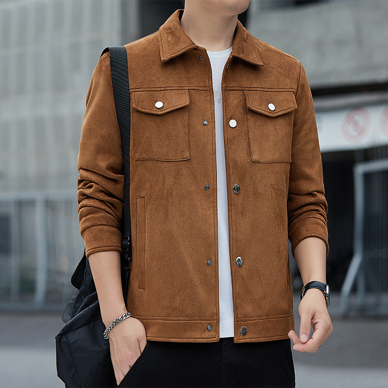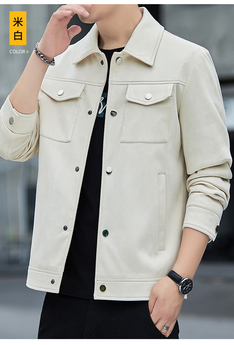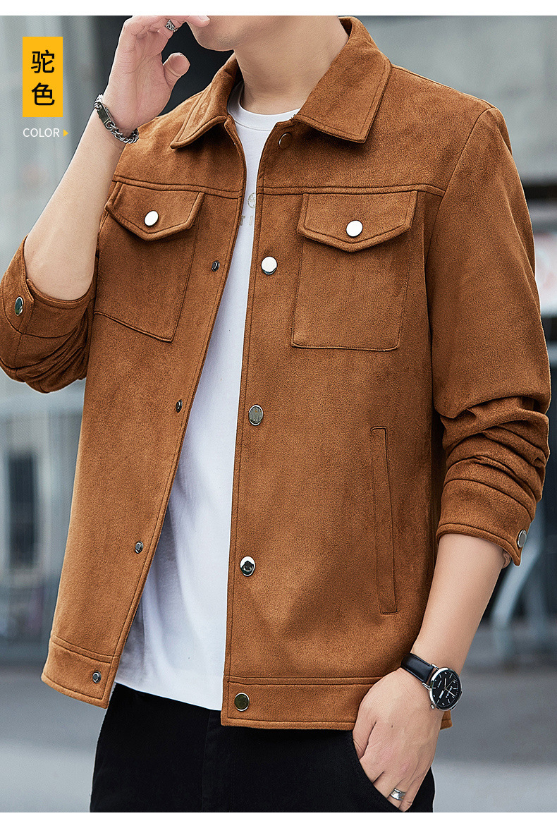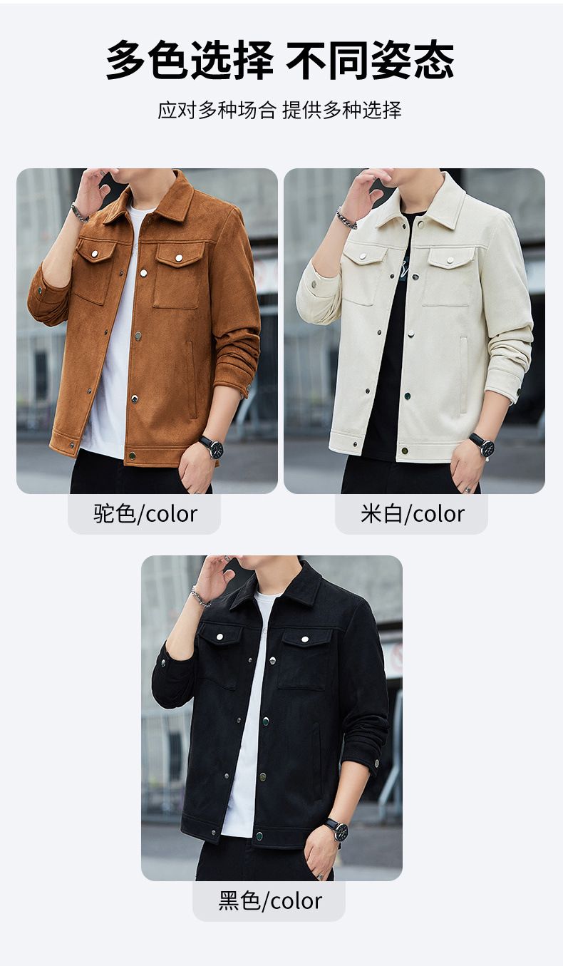 2024秋季新款潮流青春百搭休闲夹克男鹿皮绒日系潮牌男翻领外套男