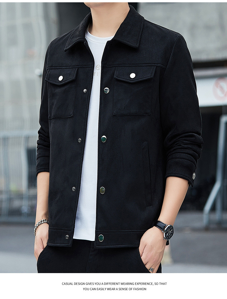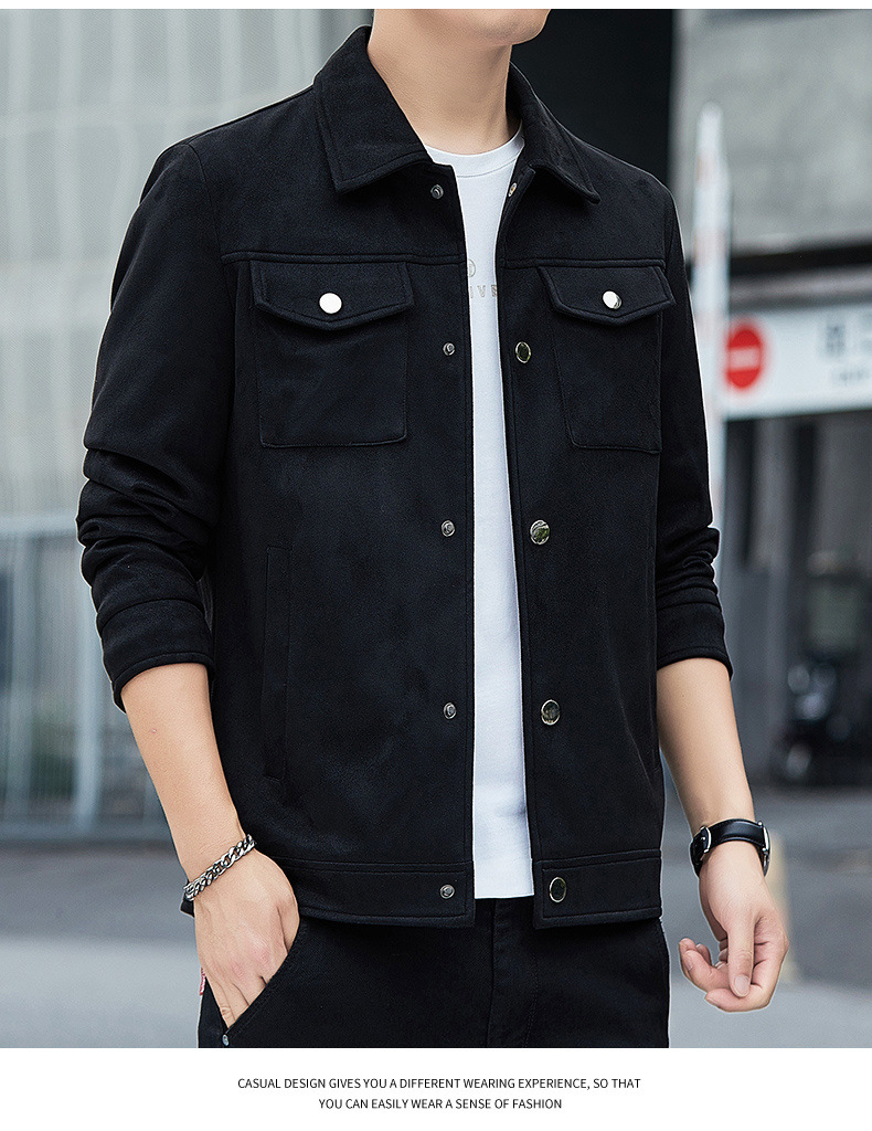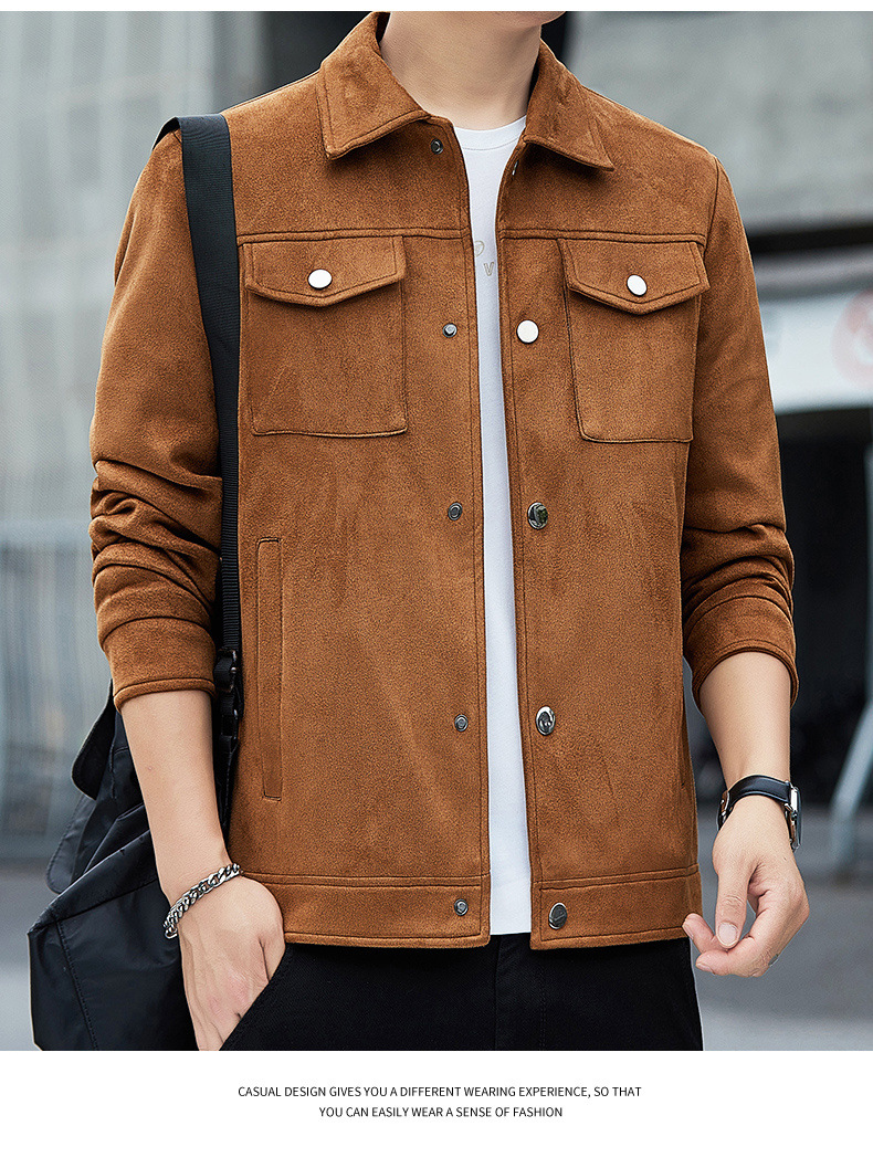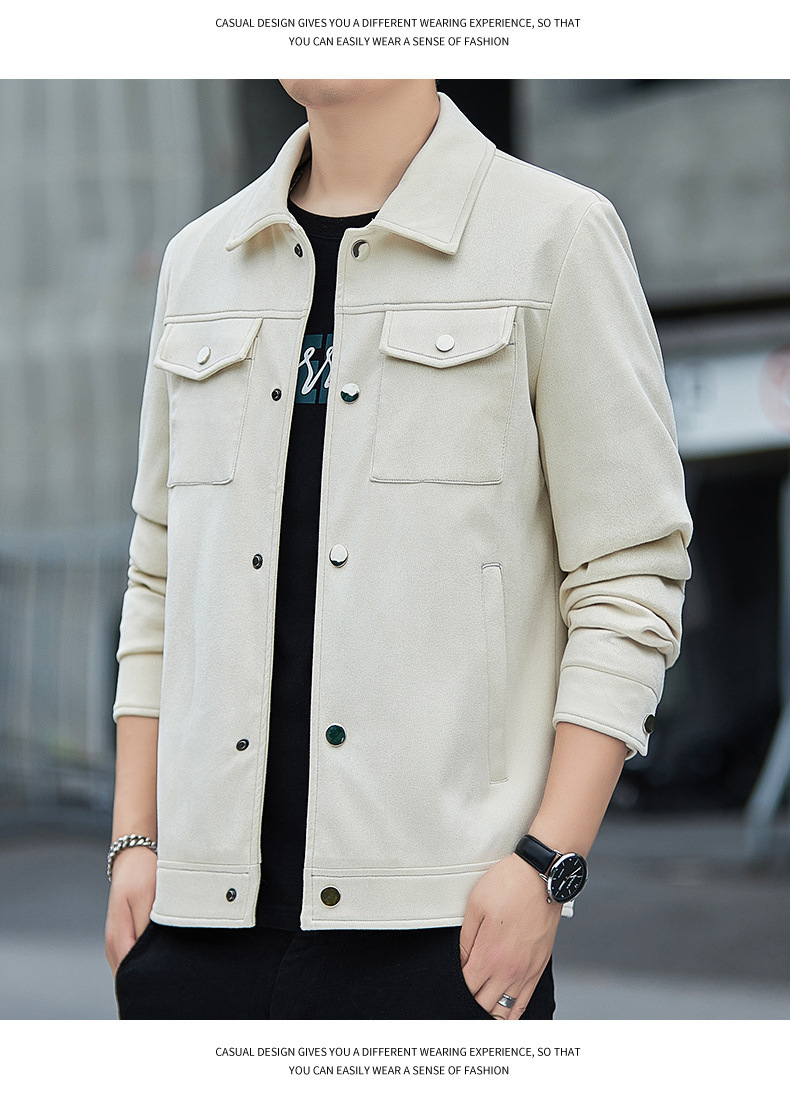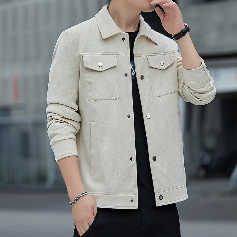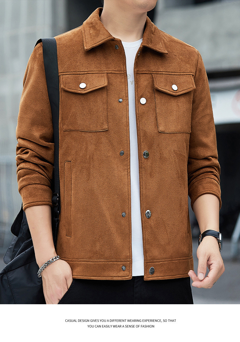 2024秋季新款潮流青春百搭休闲夹克男鹿皮绒日系潮牌男翻领外套男