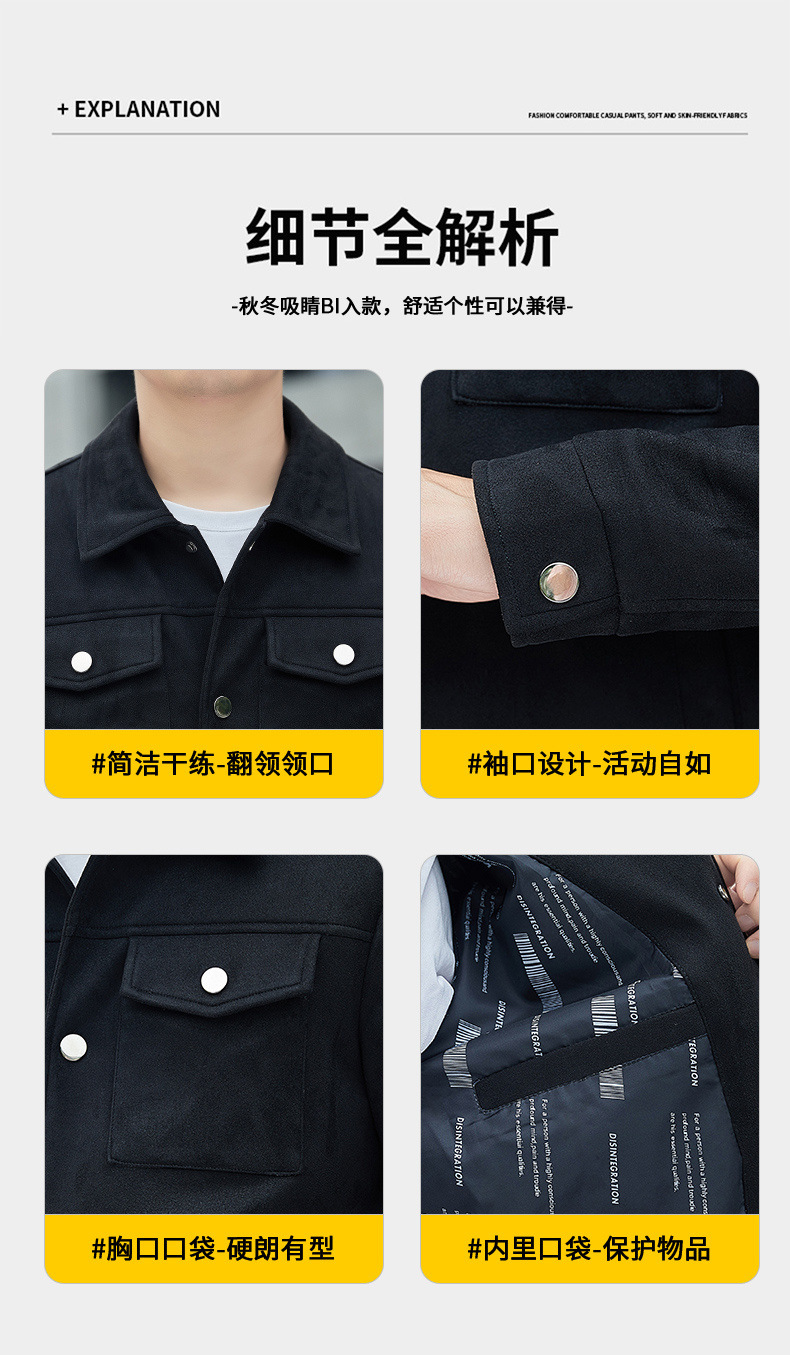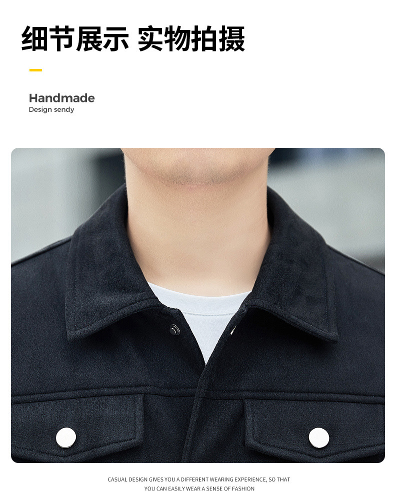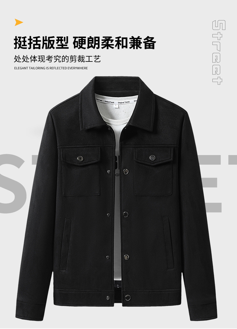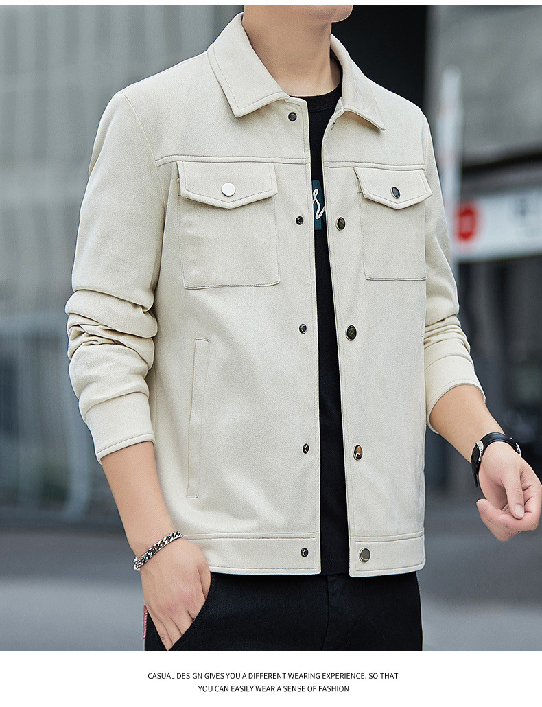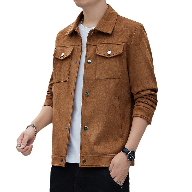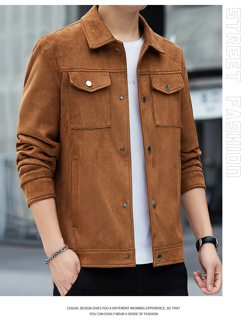 2024秋季新款潮流青春百搭休闲夹克男鹿皮绒日系潮牌男翻领外套男
