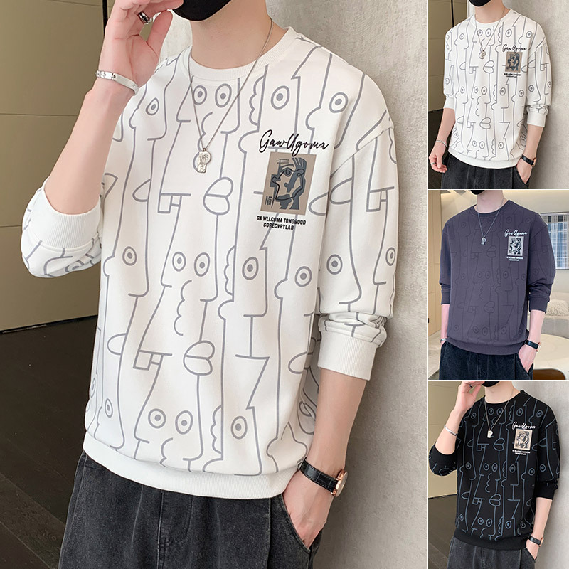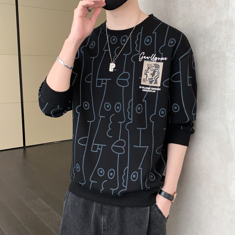 新款圆领男士卫衣男款春秋季美式内搭长袖t恤男秋衣打底衫上衣服