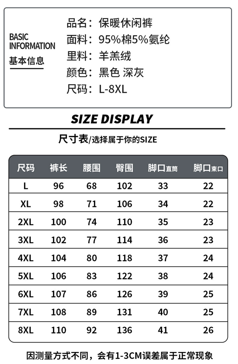8XL大码95棉超厚羊羔绒裤子男冬季加绒加厚特厚长裤子运动卫裤男
