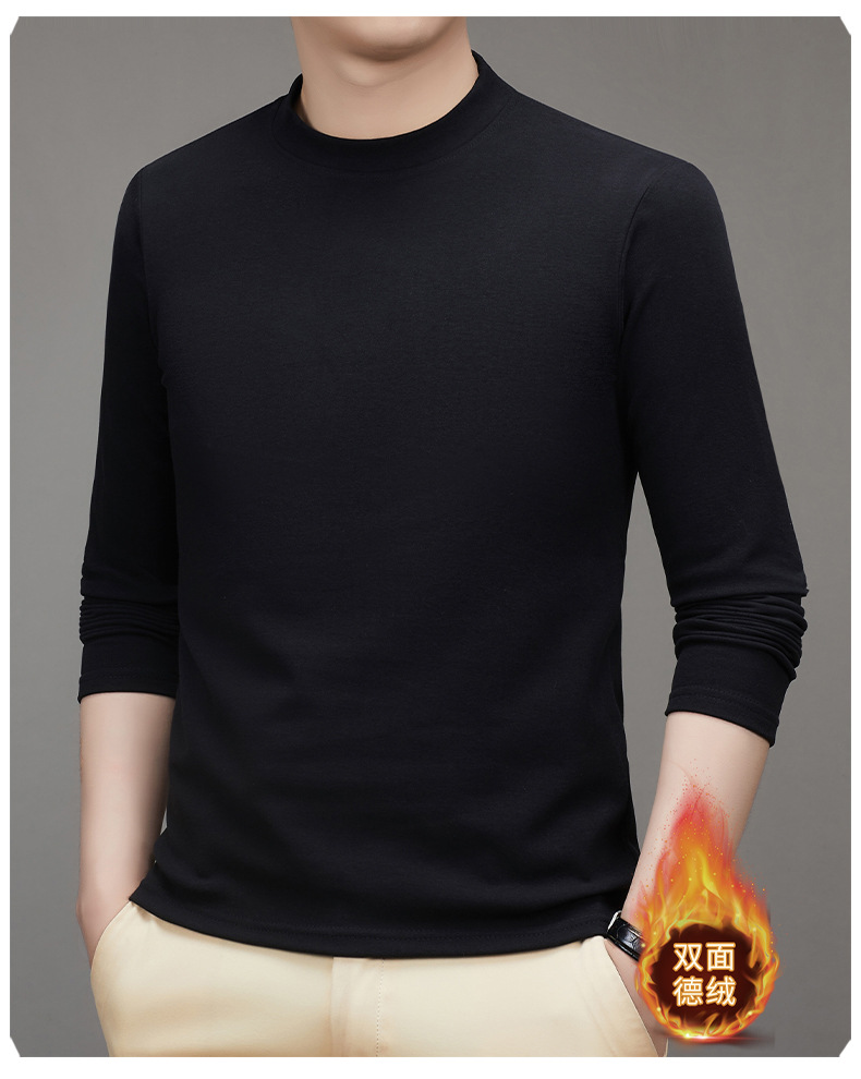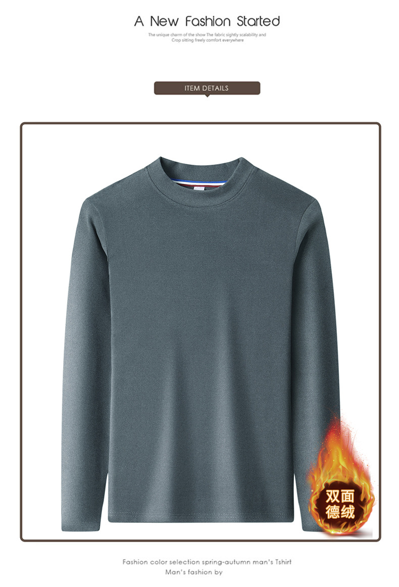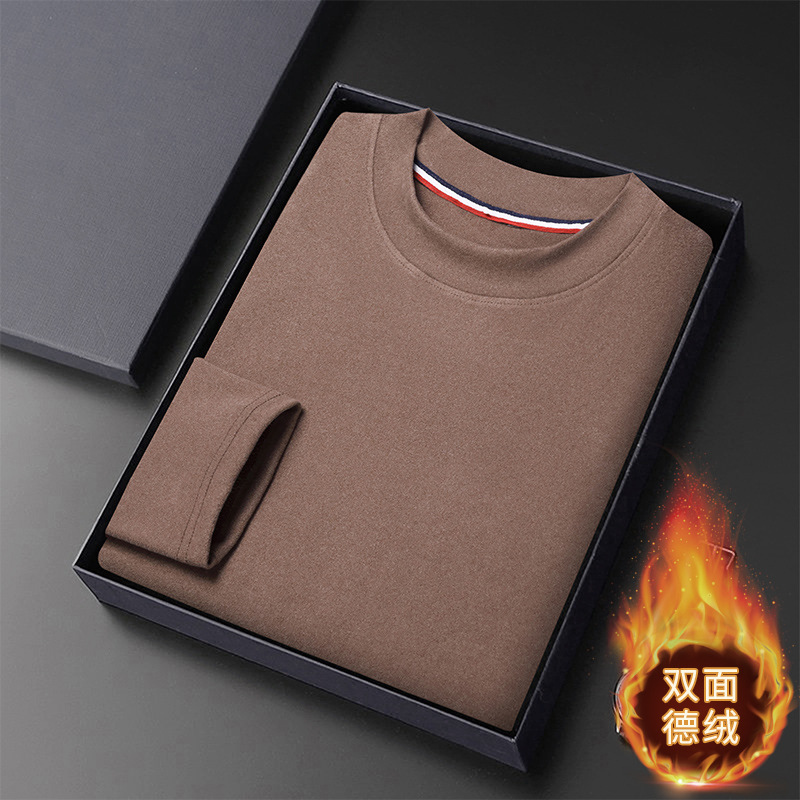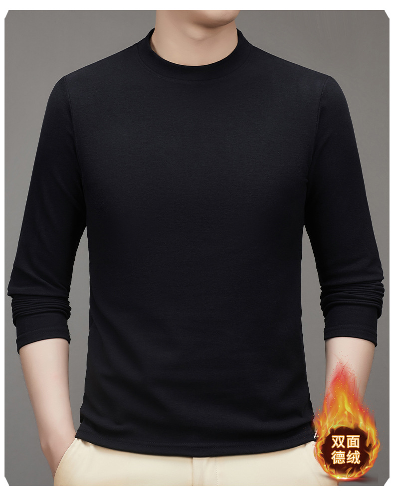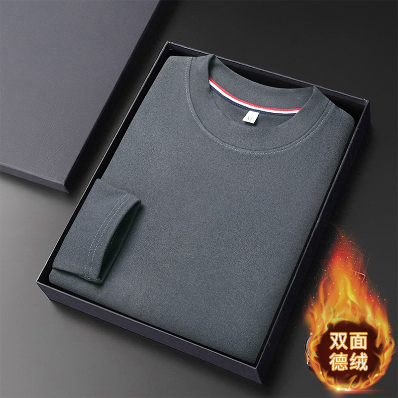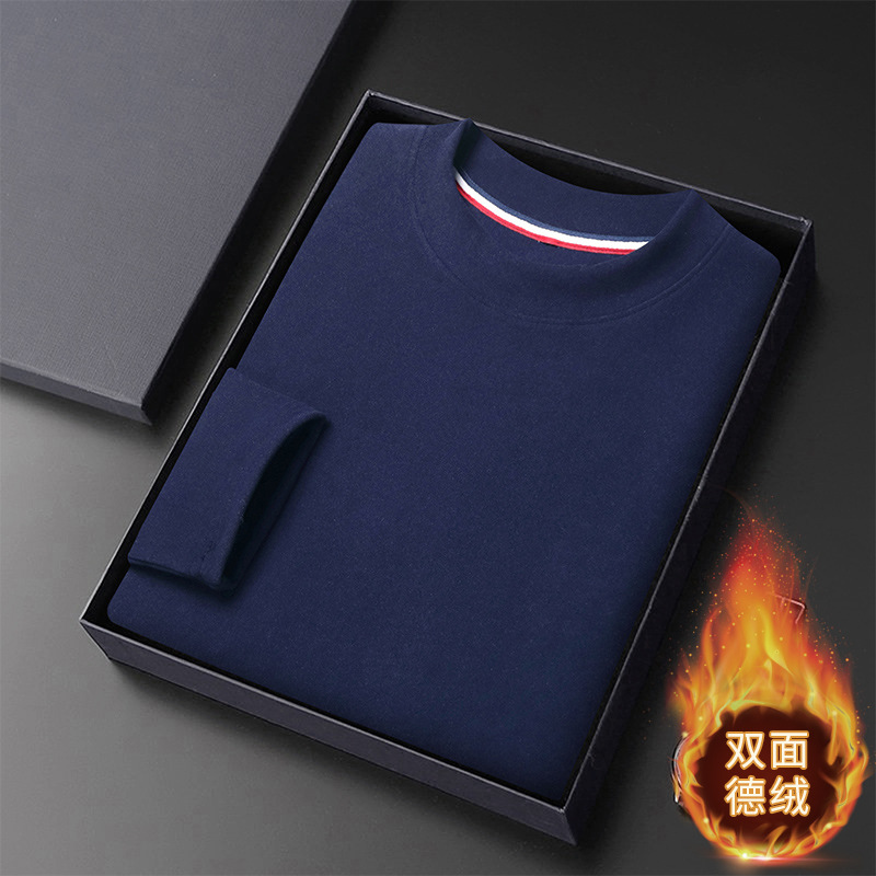中领德绒卫衣男士秋冬款加绒加厚圆领打底衫双面绒半高领爸爸男装