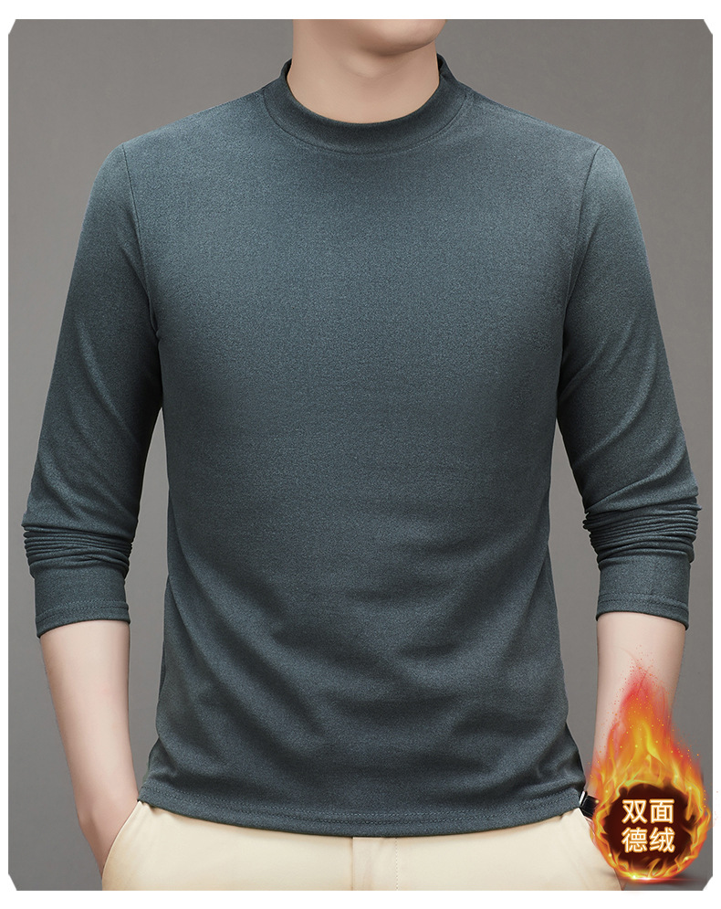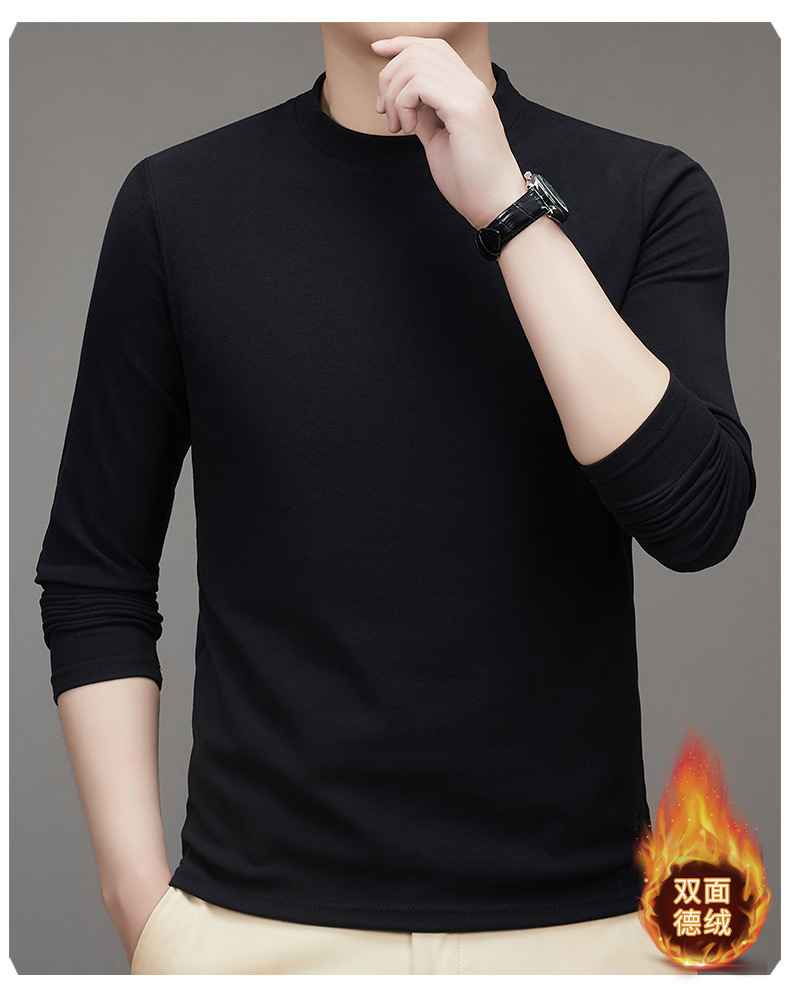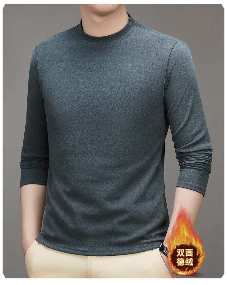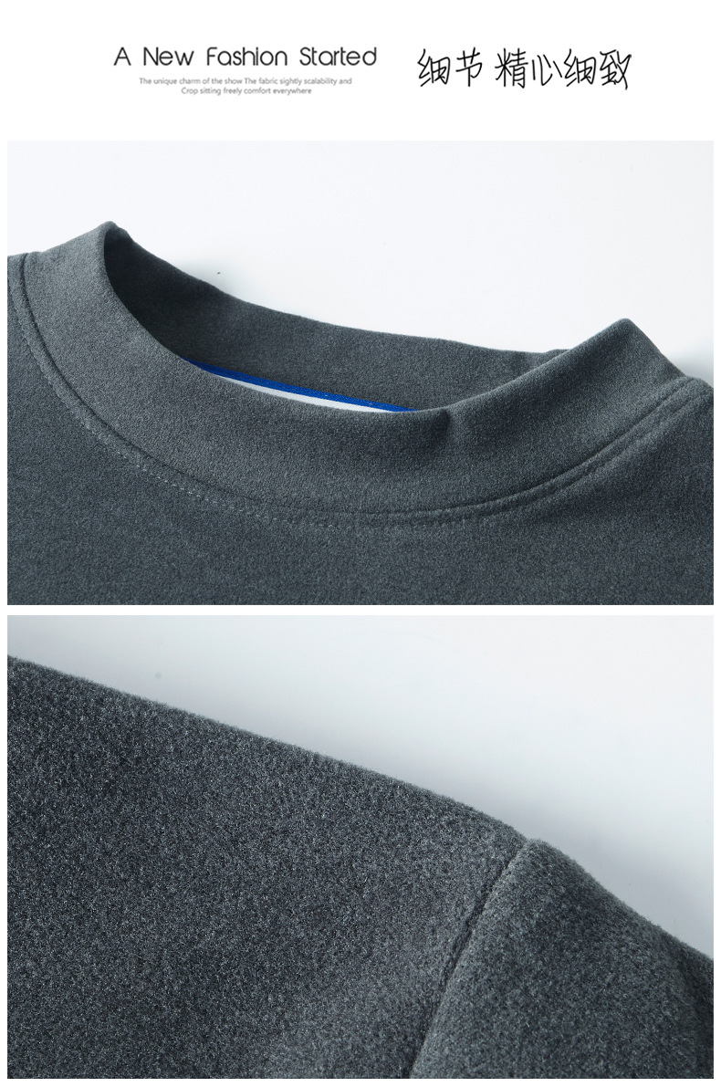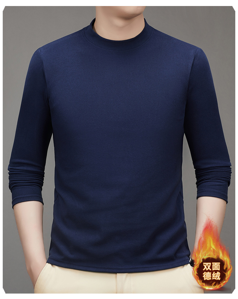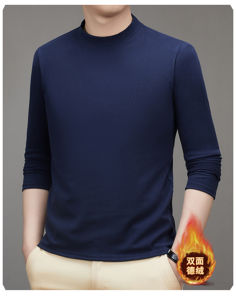 中领德绒卫衣男士秋冬款加绒加厚圆领打底衫双面绒半高领爸爸男装