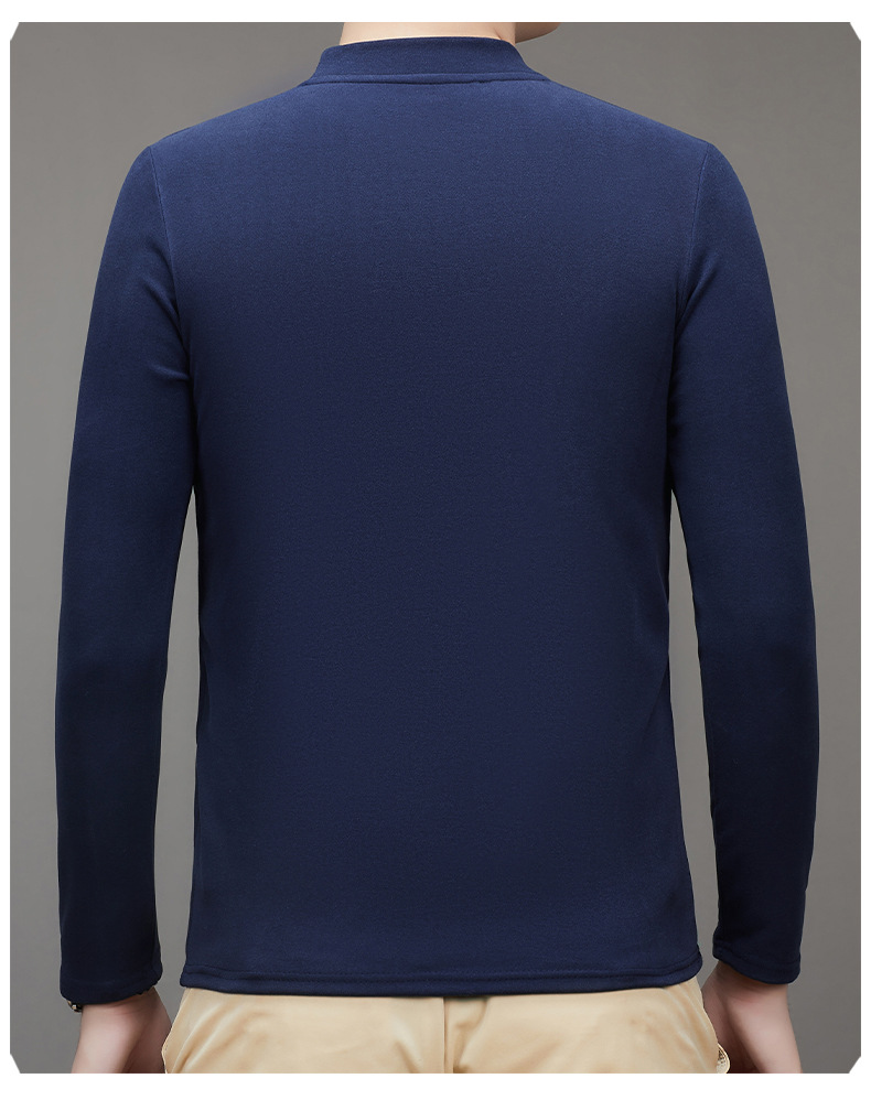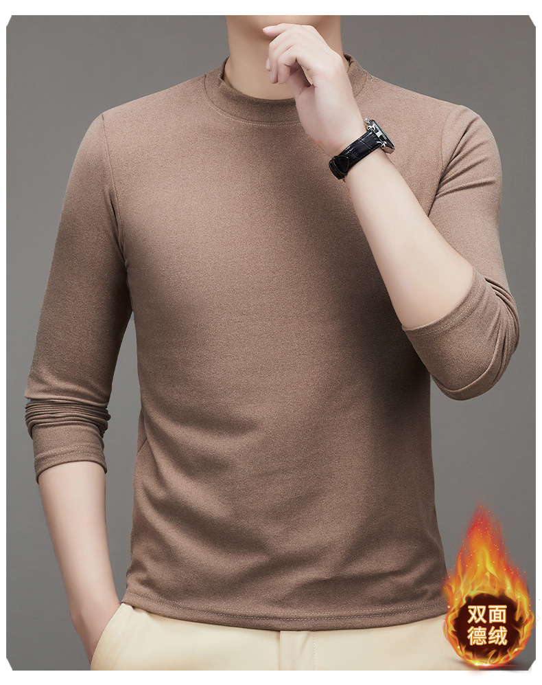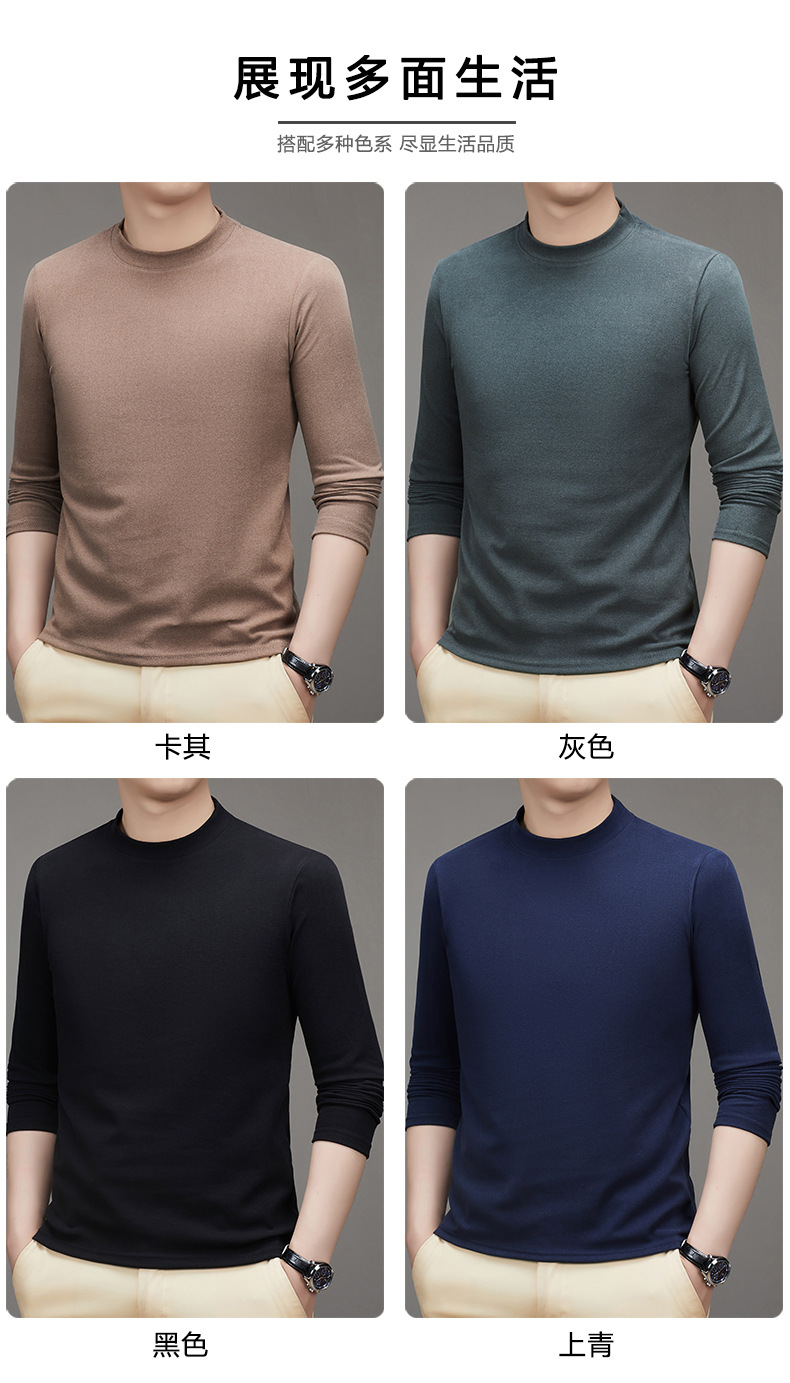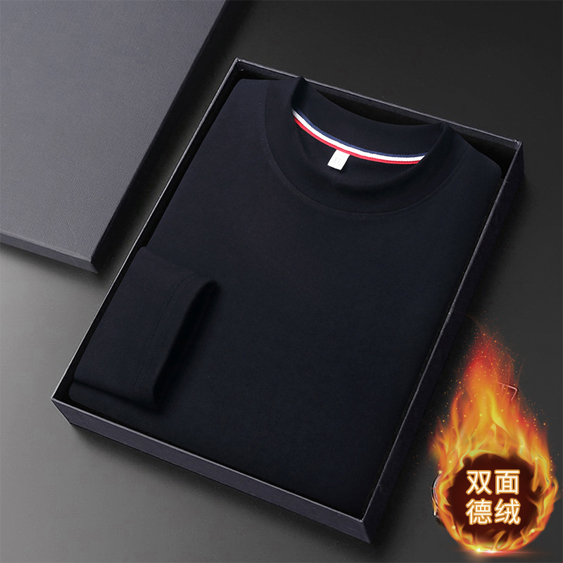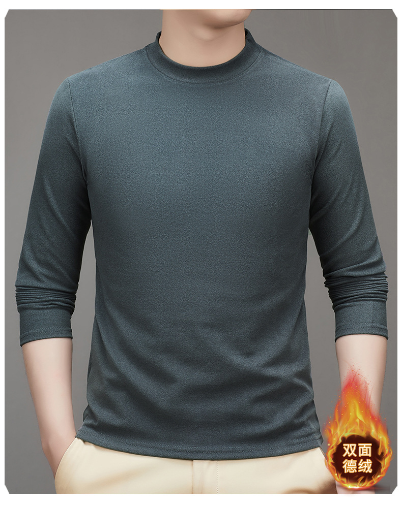 中领德绒卫衣男士秋冬款加绒加厚圆领打底衫双面绒半高领爸爸男装