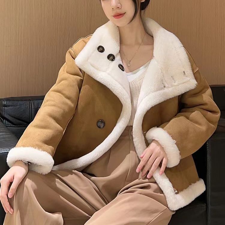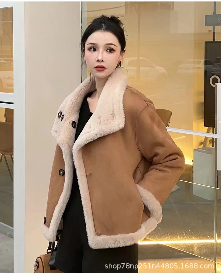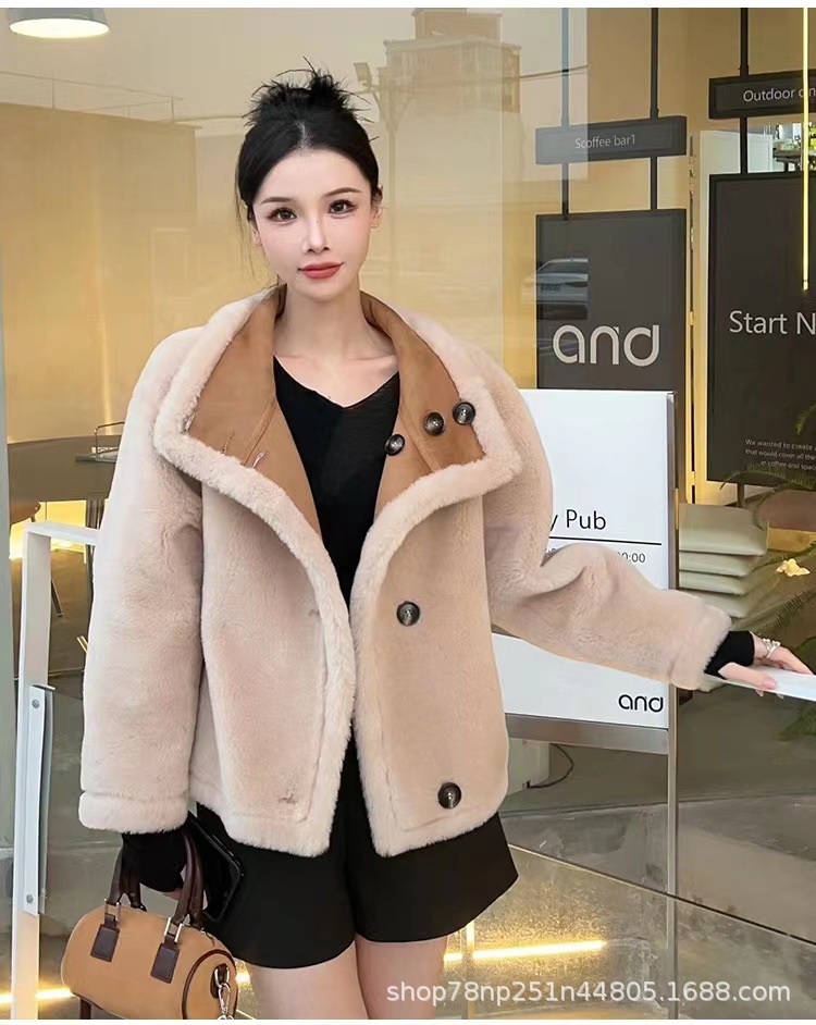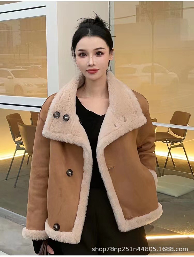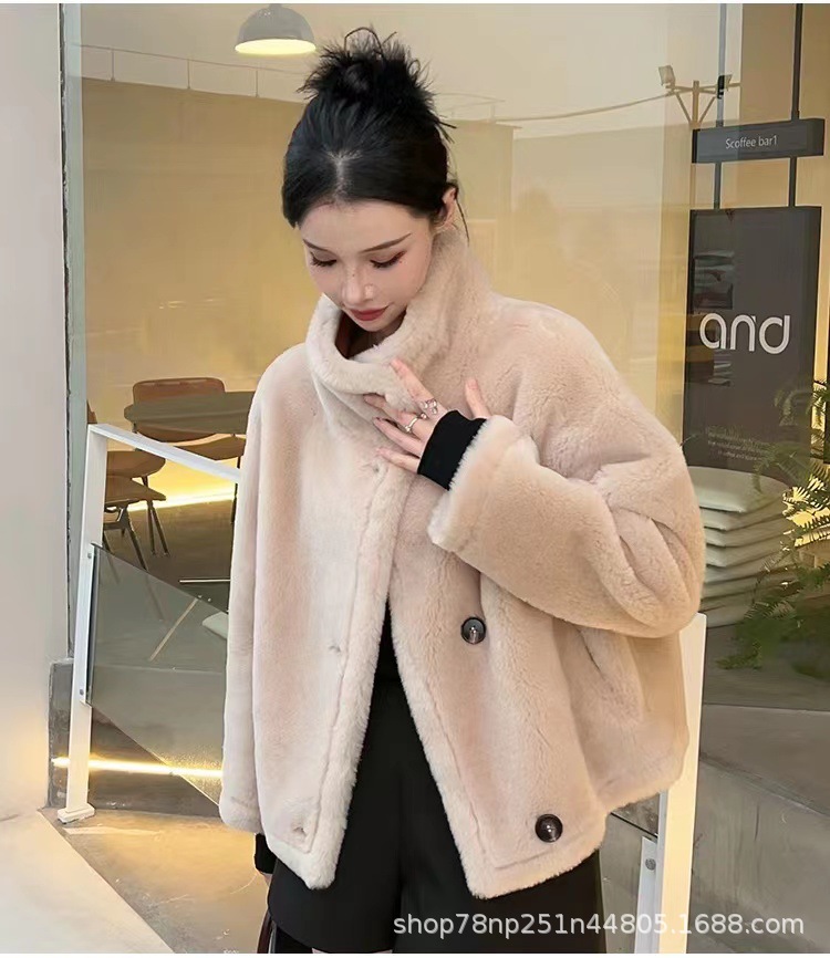 海宁皮草皮毛一体厚全羊毛秋冬新百搭韩版两面穿宽松显瘦短外套女