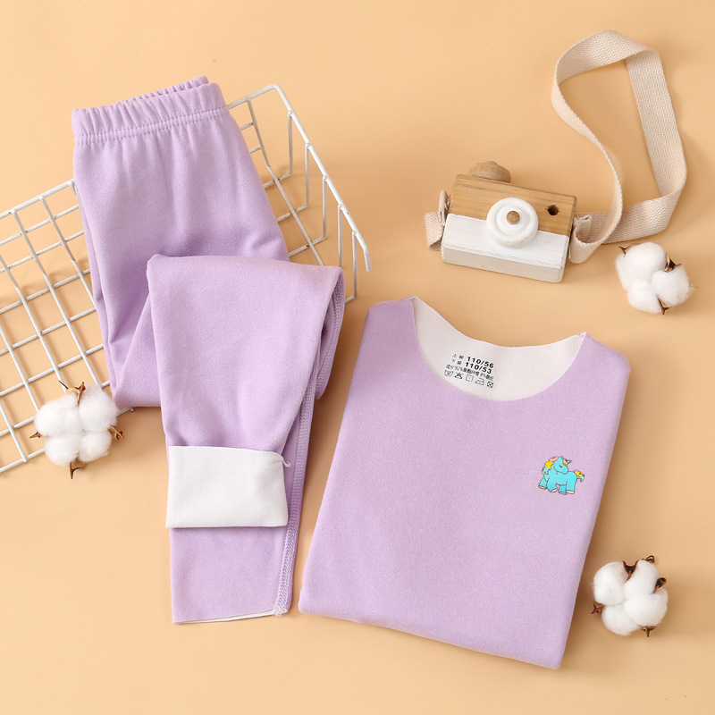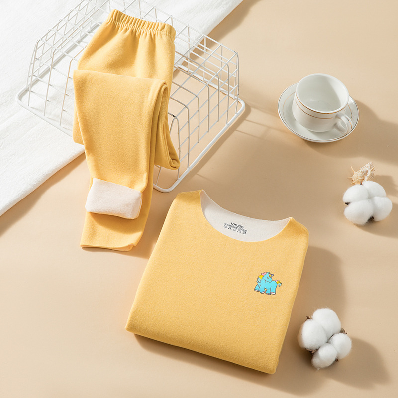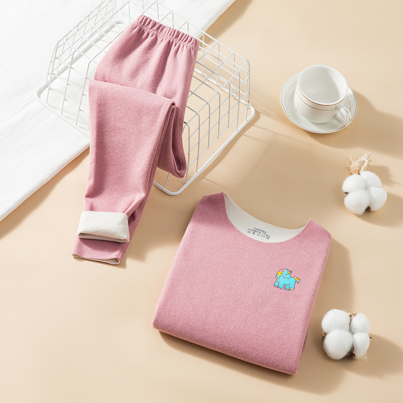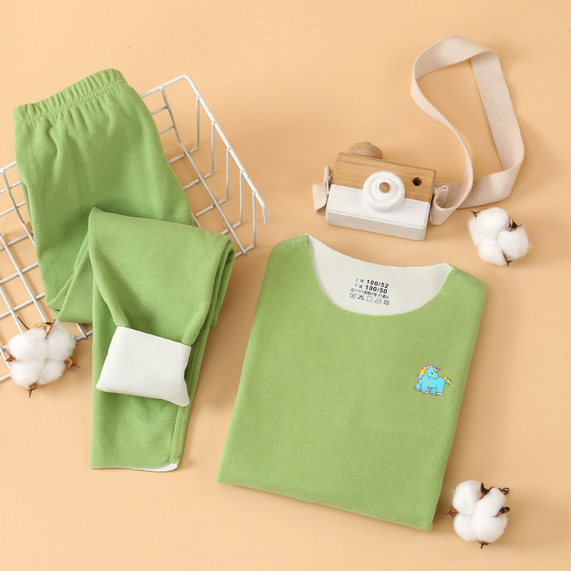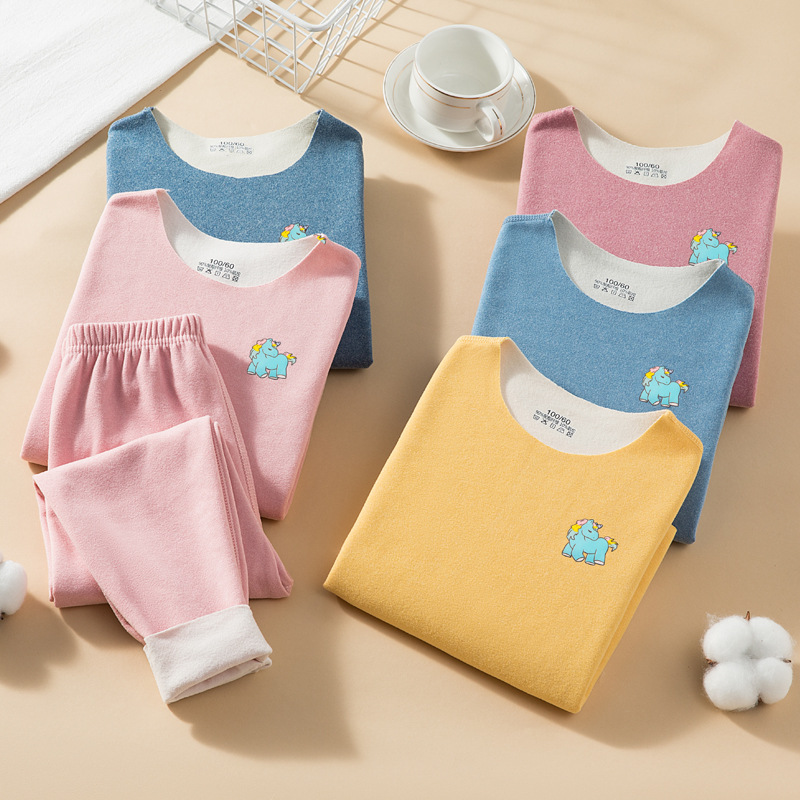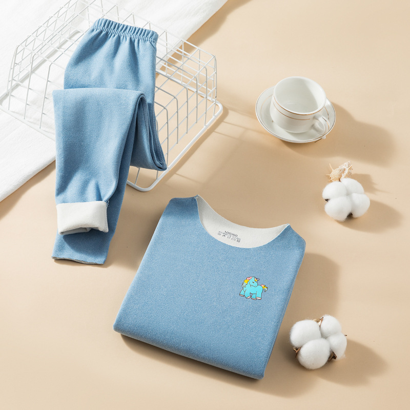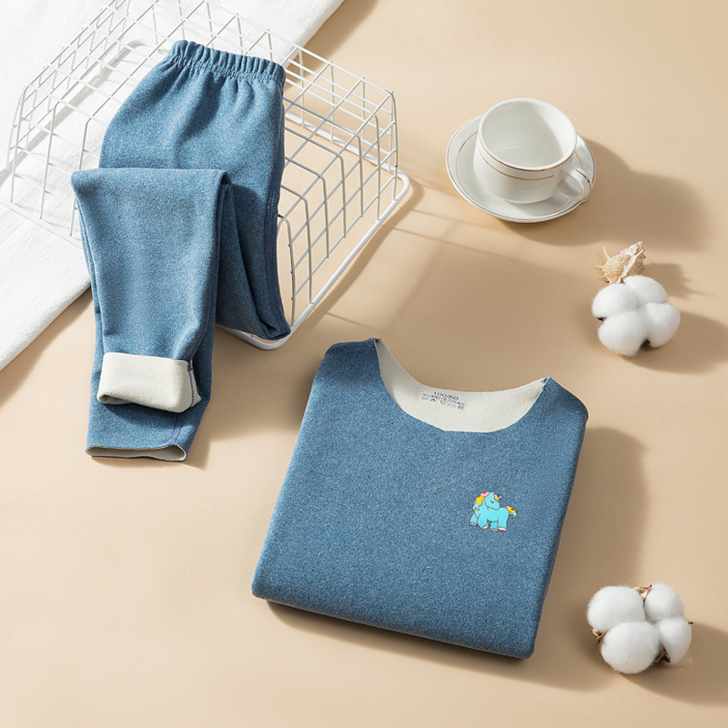 儿童秋冬加绒保暖内衣套装AB面磨毛无痕圆领修身中大童秋衣秋裤