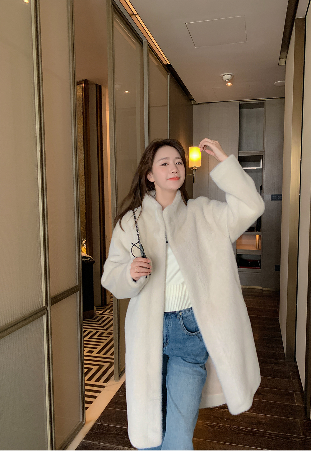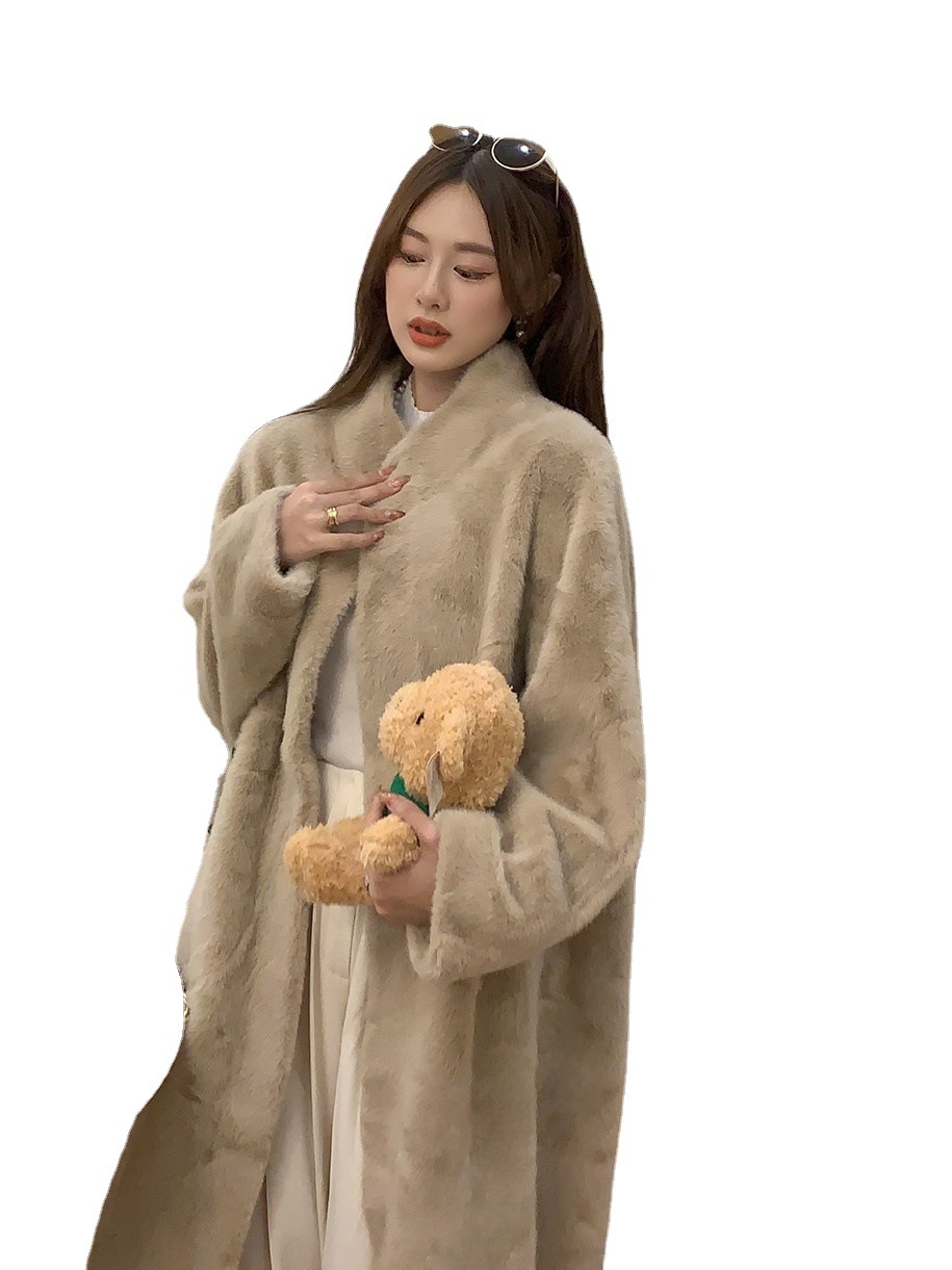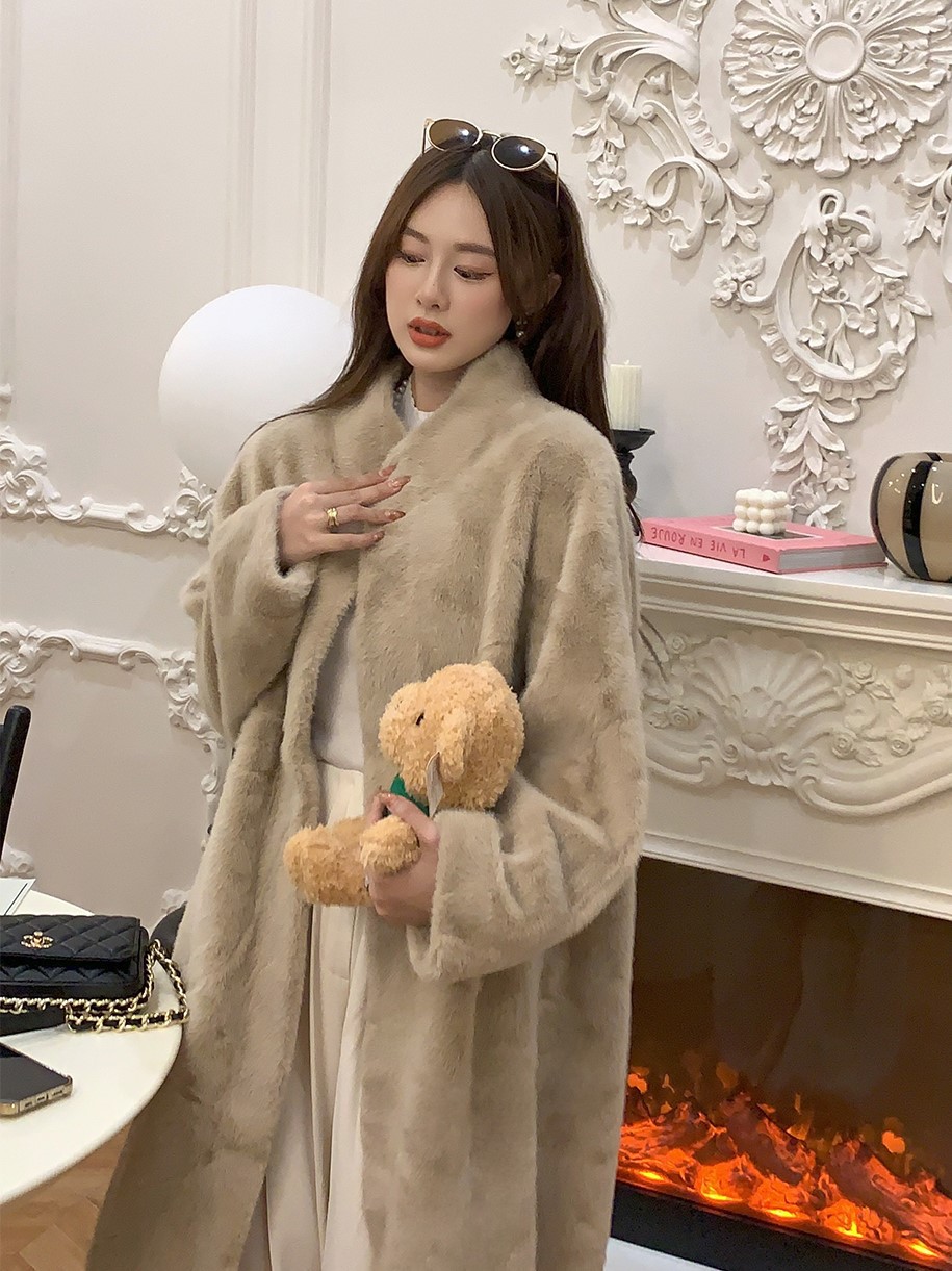 年轻款环保皮草气质皮毛一体外套女貂毛绒加厚长款立领大衣慵懒风