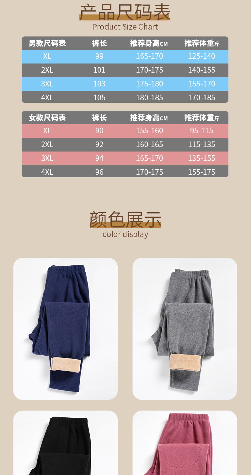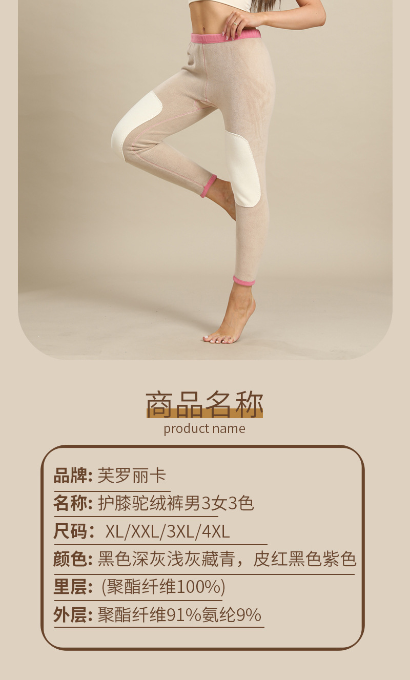 批发男士驼绒护膝保暖裤冬加厚加绒情侣秋裤中老年打底衬裤线裤女