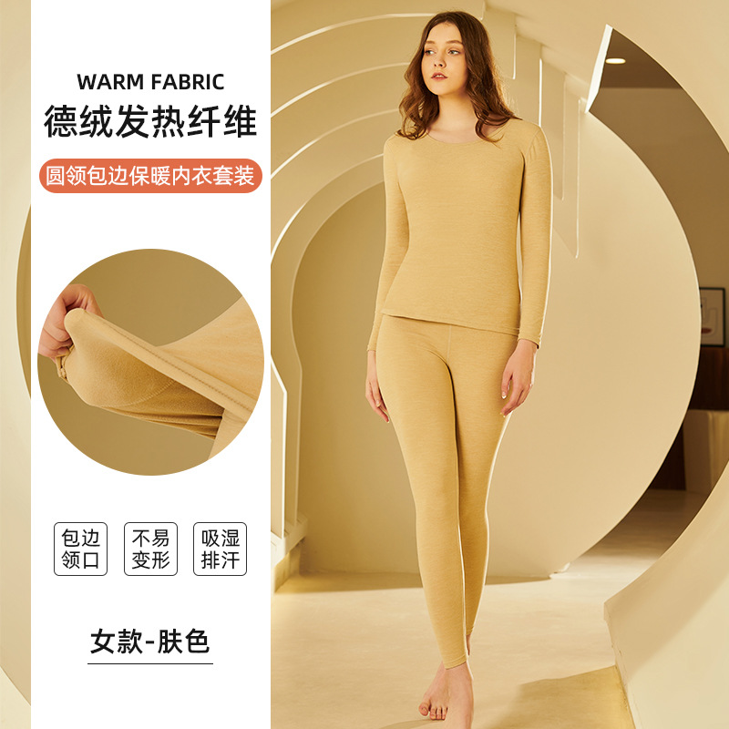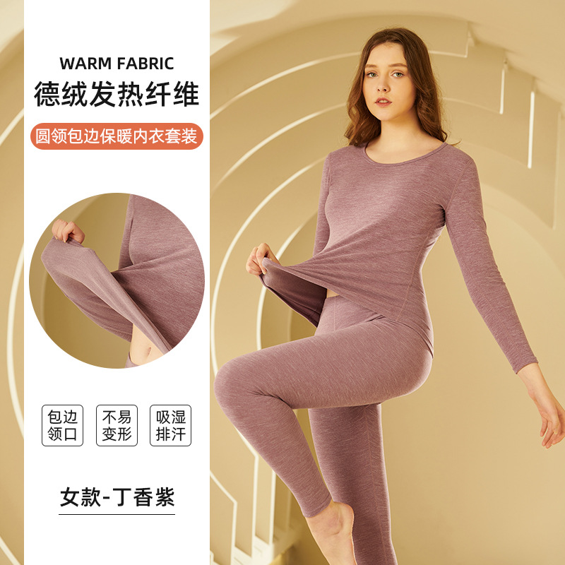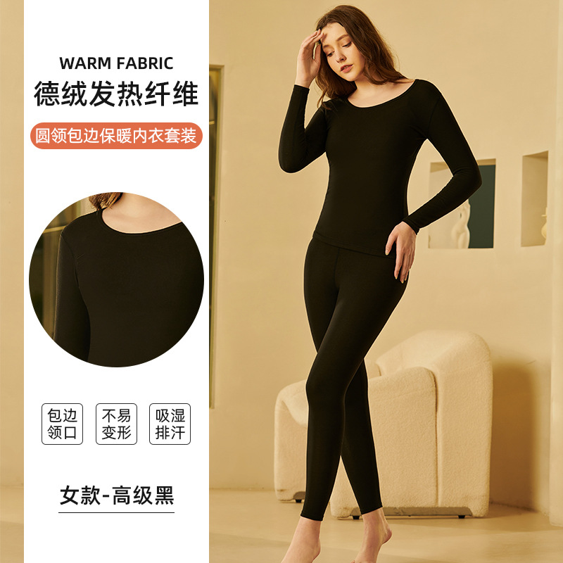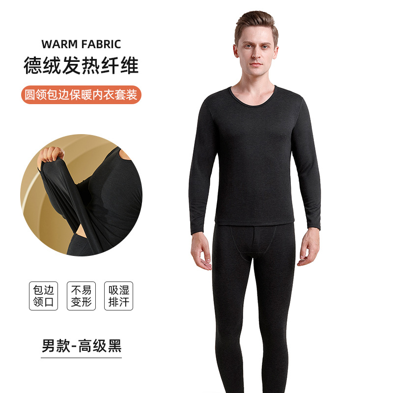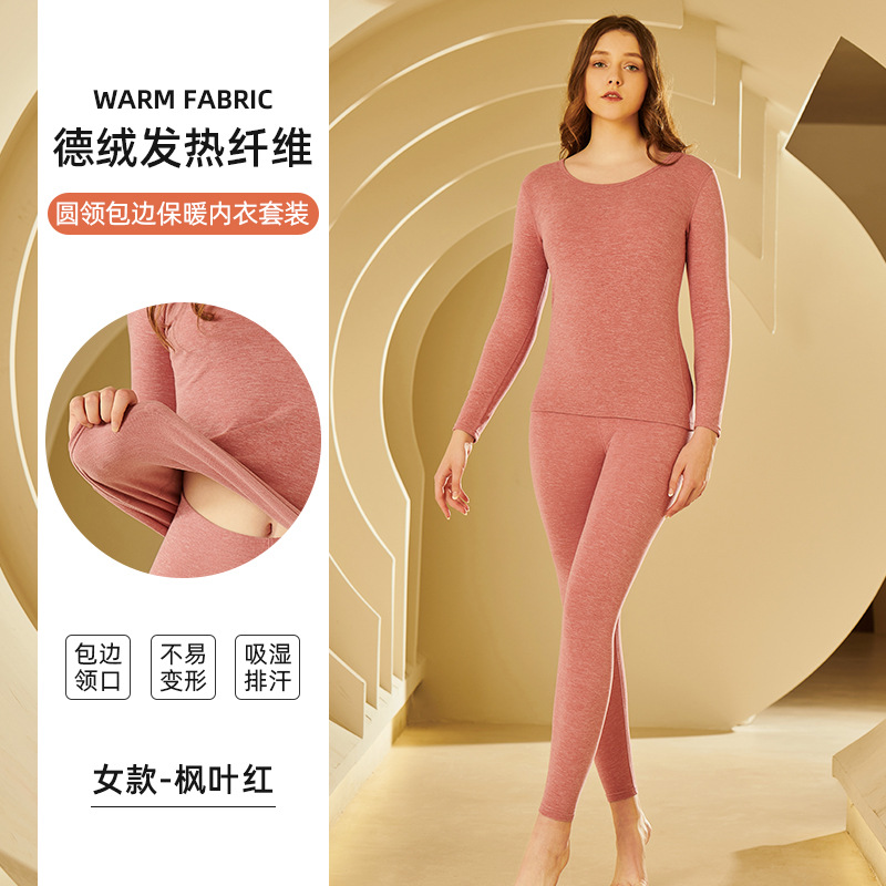 2024德绒保暖内衣套装圆领锁边炫彩双面磨毛秋衣秋裤女弹力无痕男