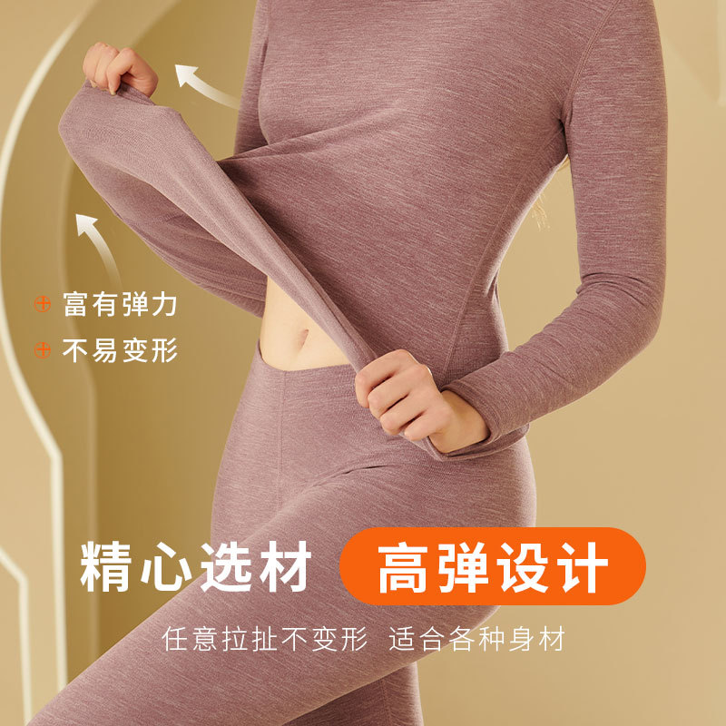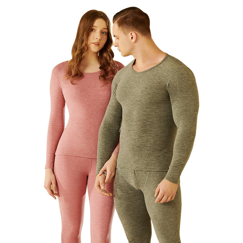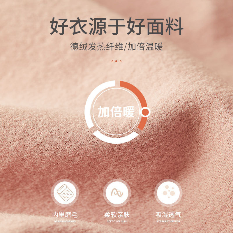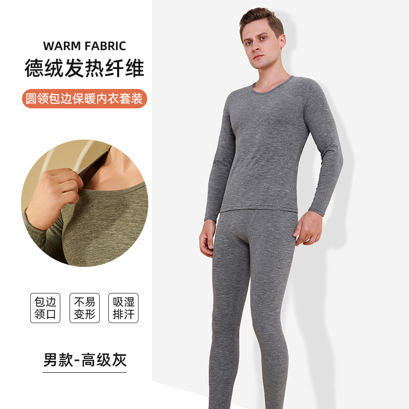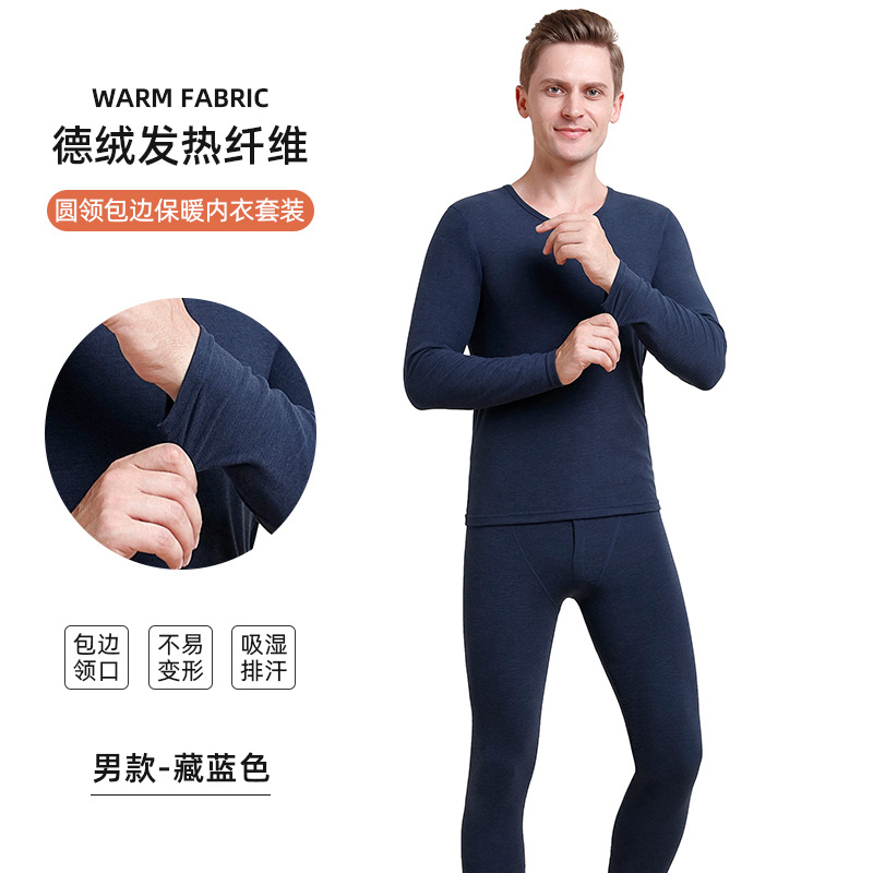 2024德绒保暖内衣套装圆领锁边炫彩双面磨毛秋衣秋裤女弹力无痕男