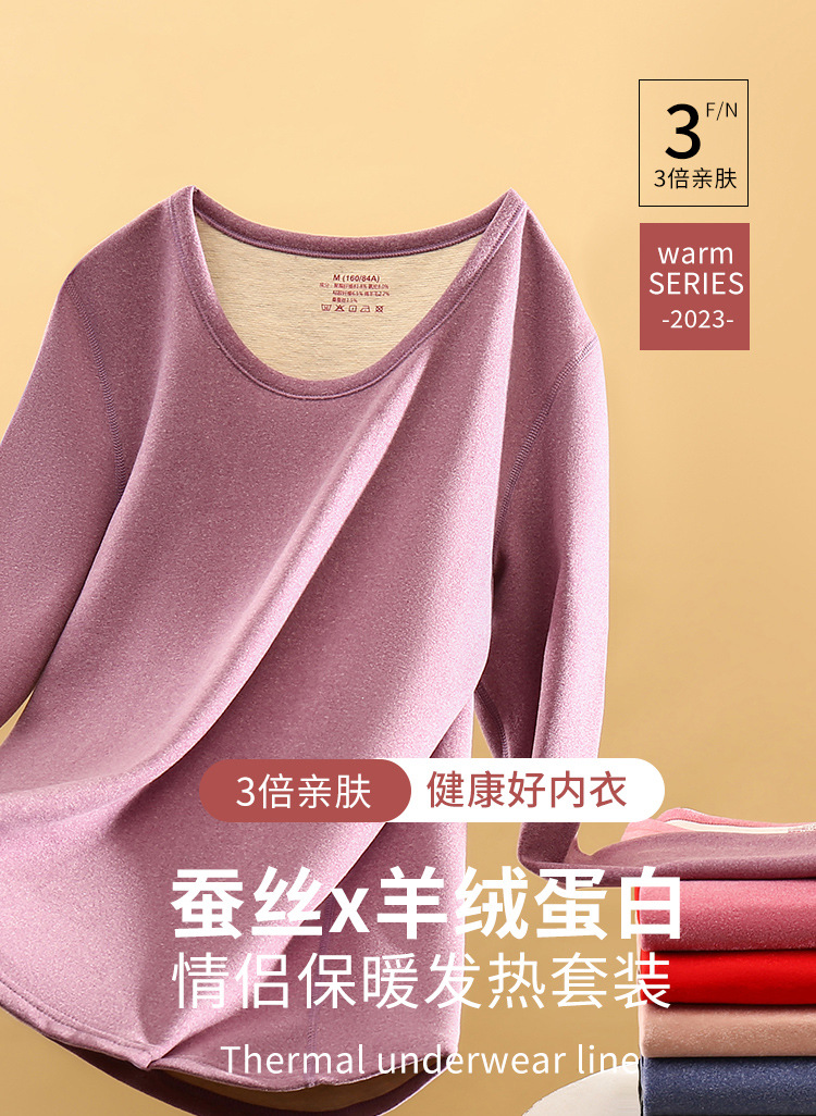 保暖内衣女双面磨毛加绒加厚包边德绒情侣套装蚕丝羊毛男秋衣秋裤