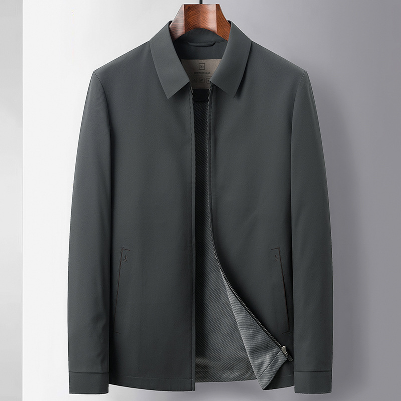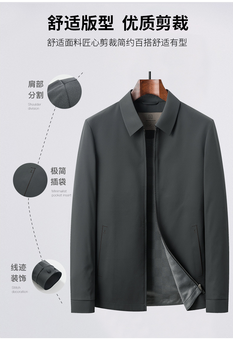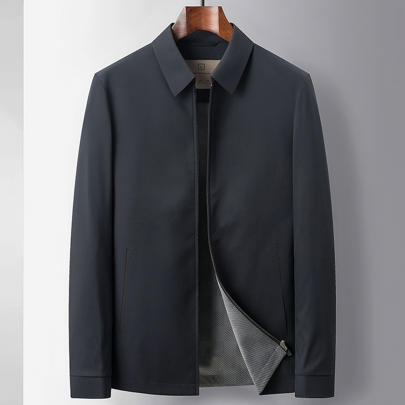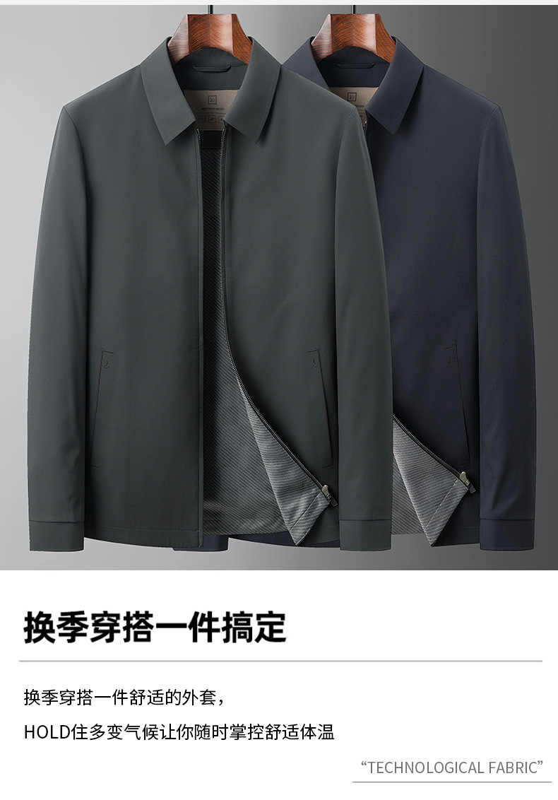 高端行政夹克秋季新款爸爸上衣中年男士春秋薄款外套弹力休闲茄克