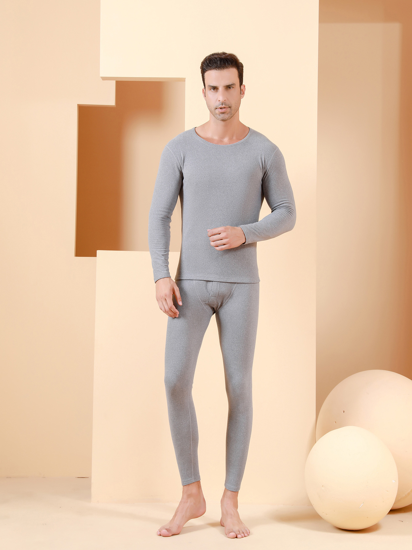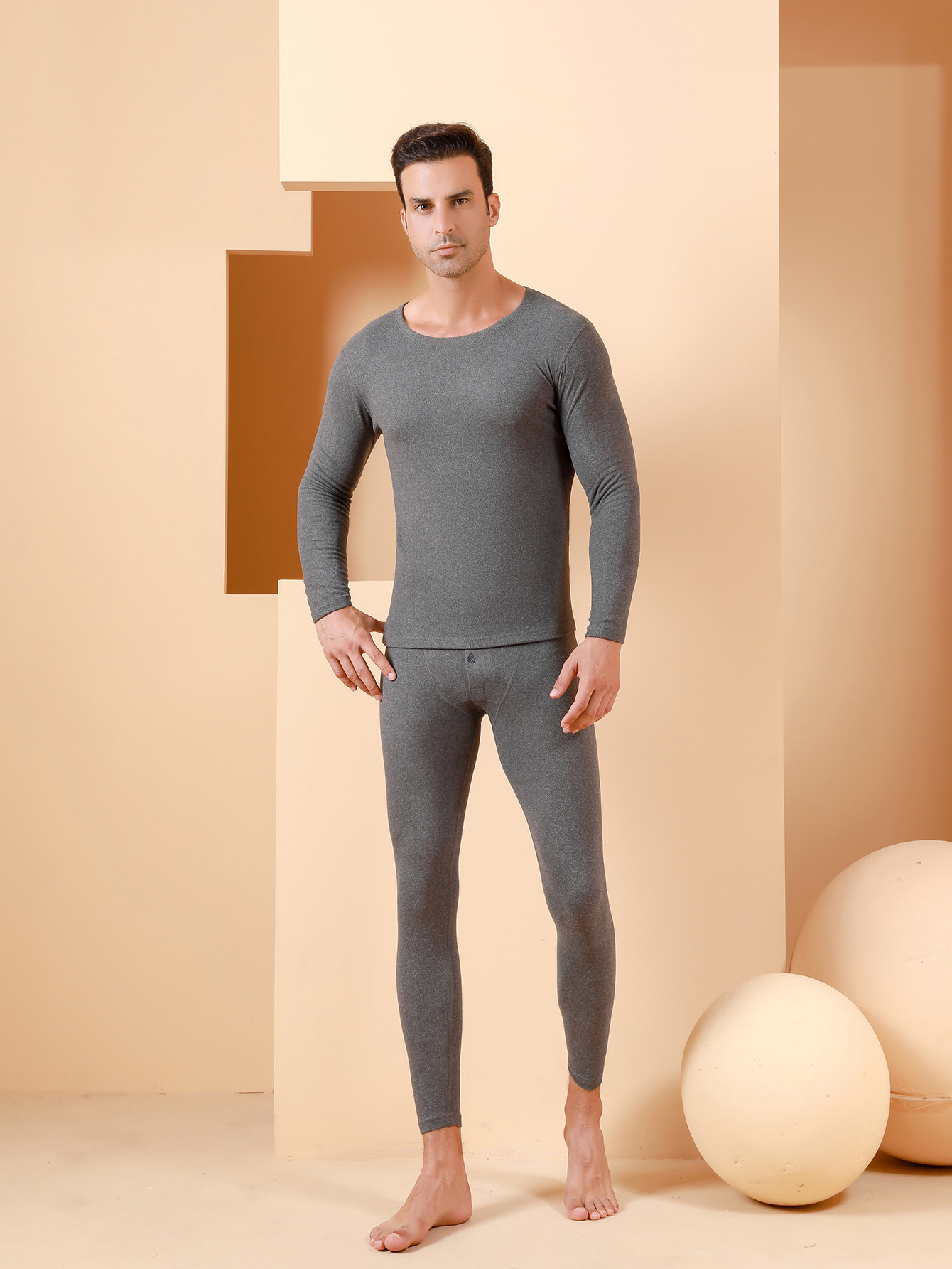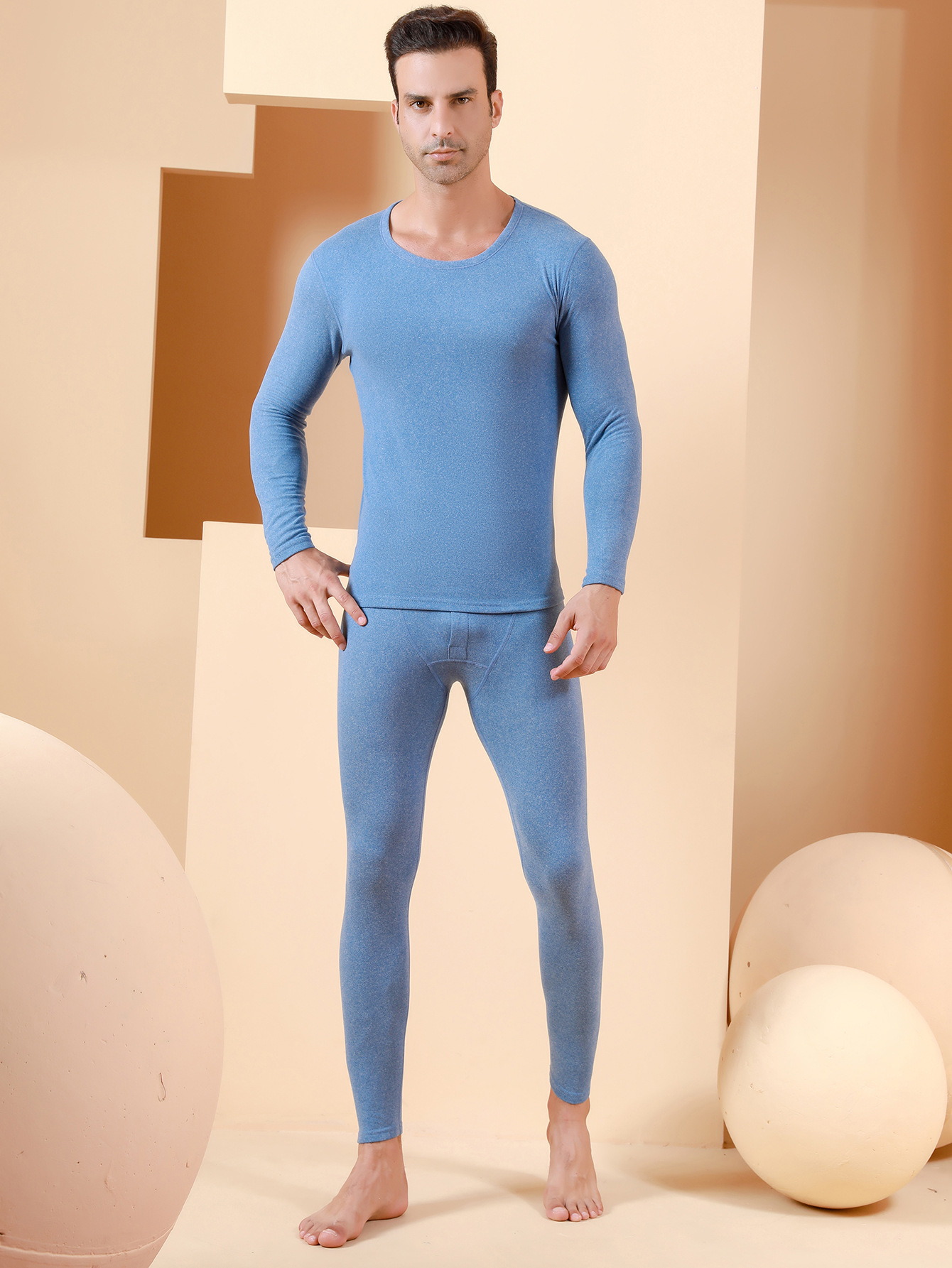 秋冬活动款德绒AB面双面磨毛男士保暖内衣套装阳离子套装男现货