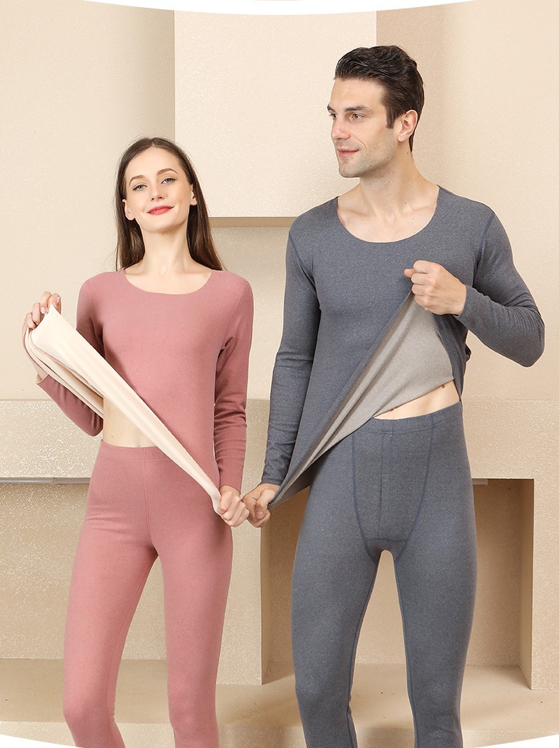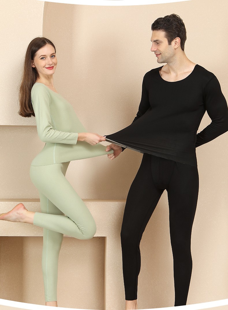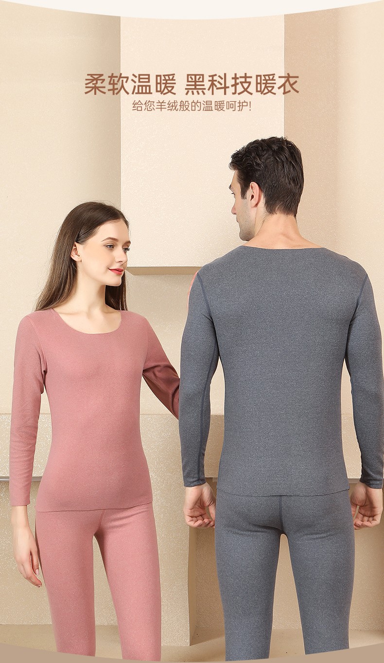 新款批发冬季AB面无痕男士保暖内衣德发热绒女士保暖套装秋衣秋裤