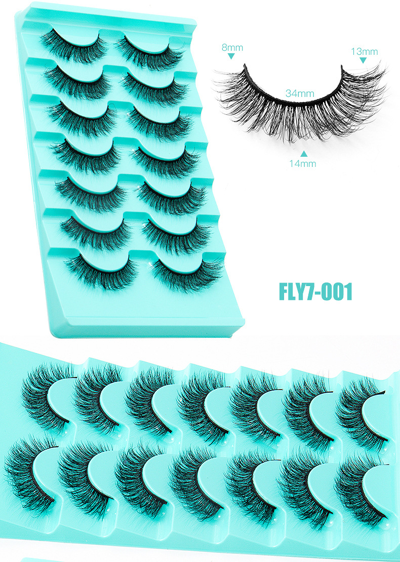 欧美跨境爆款7对装高仿水貂毛假睫毛自然浓密仿真眼睫毛现货批发