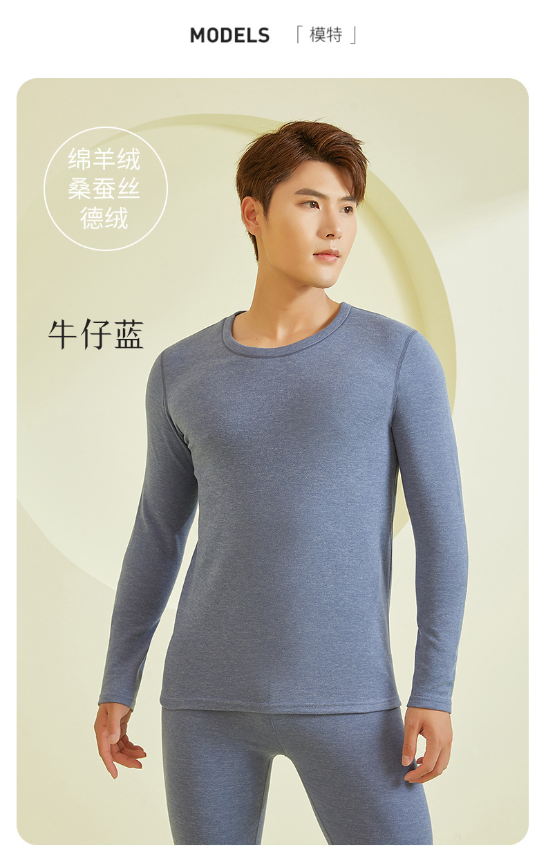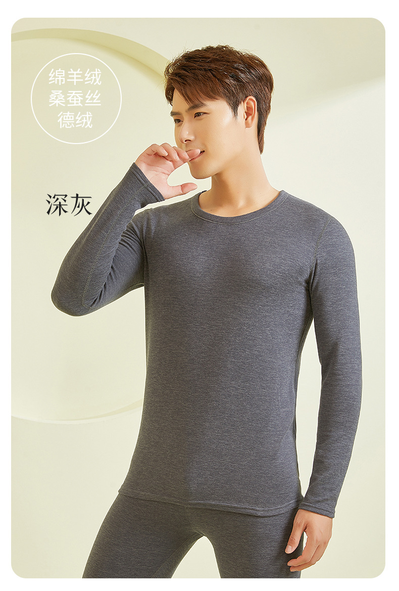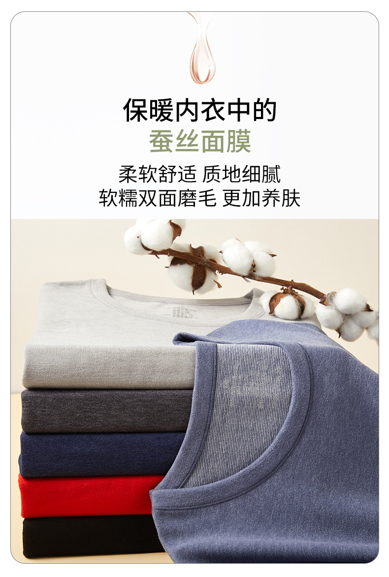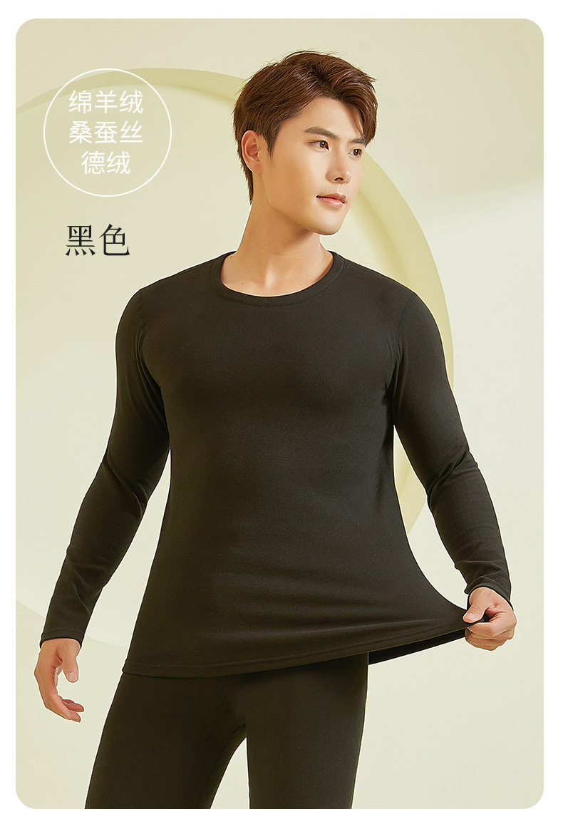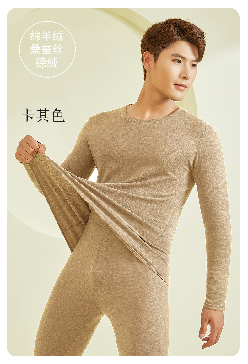23年新款羊毛蚕丝包领保暖内衣男款秋冬秋衣秋裤保暖打底套装批发