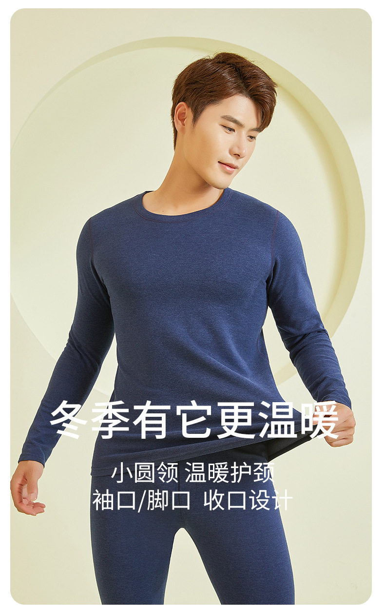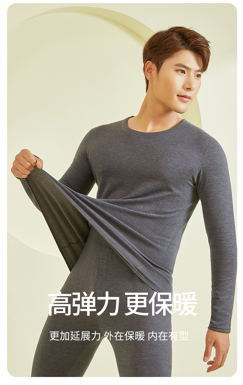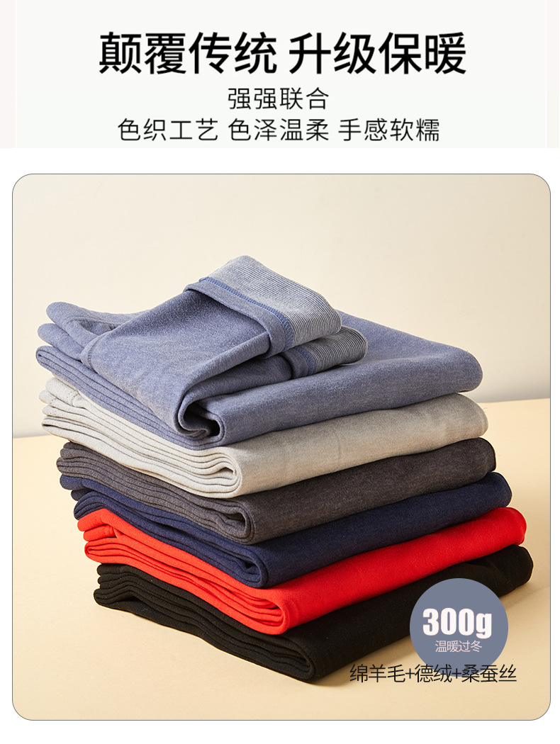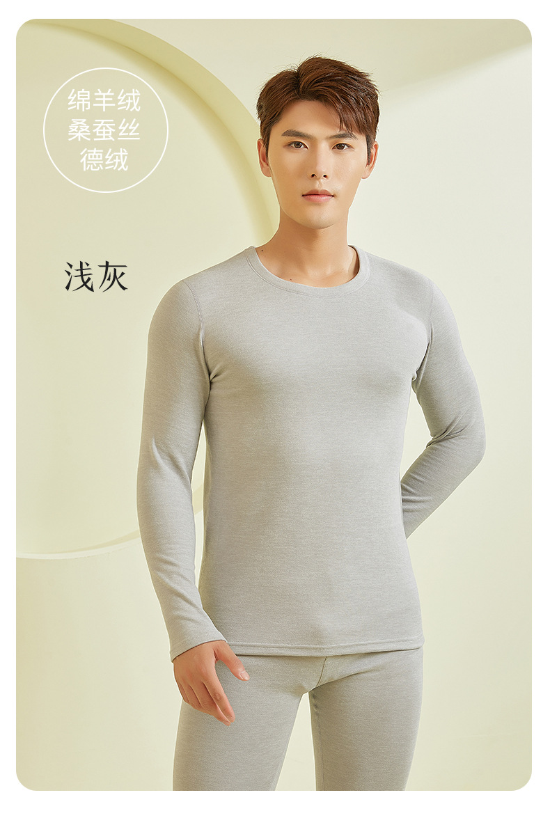 23年新款羊毛蚕丝包领保暖内衣男款秋冬秋衣秋裤保暖打底套装批发