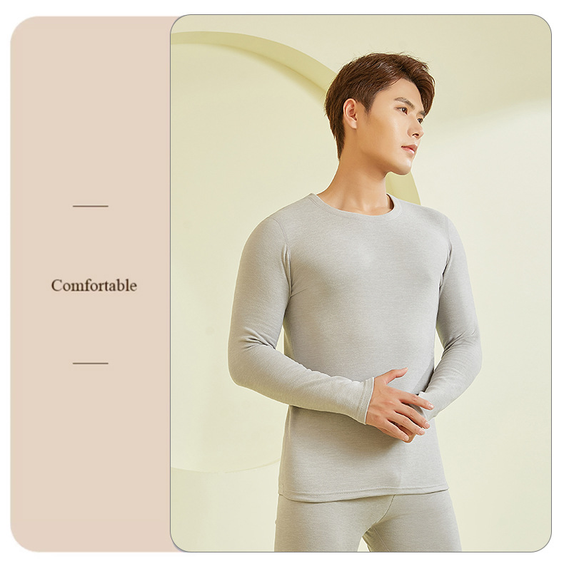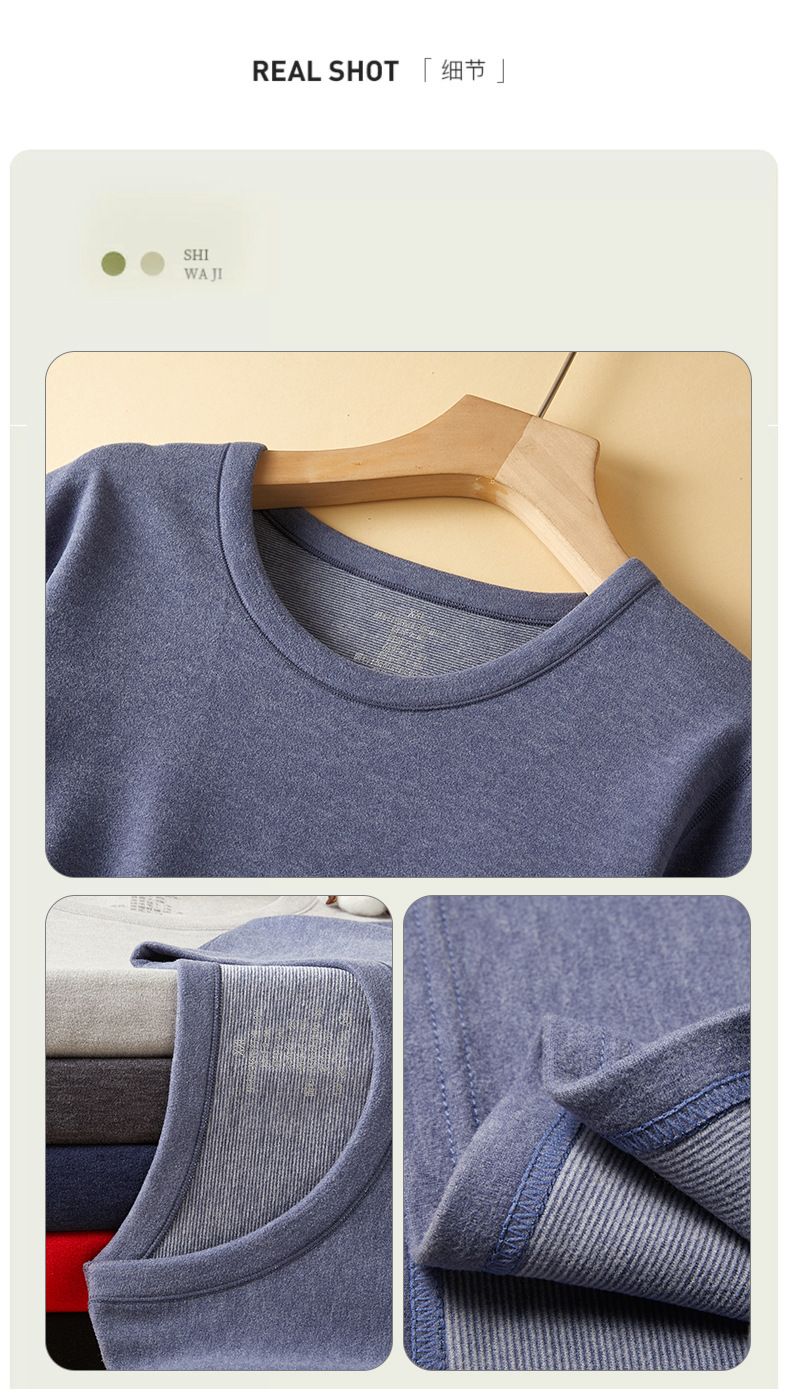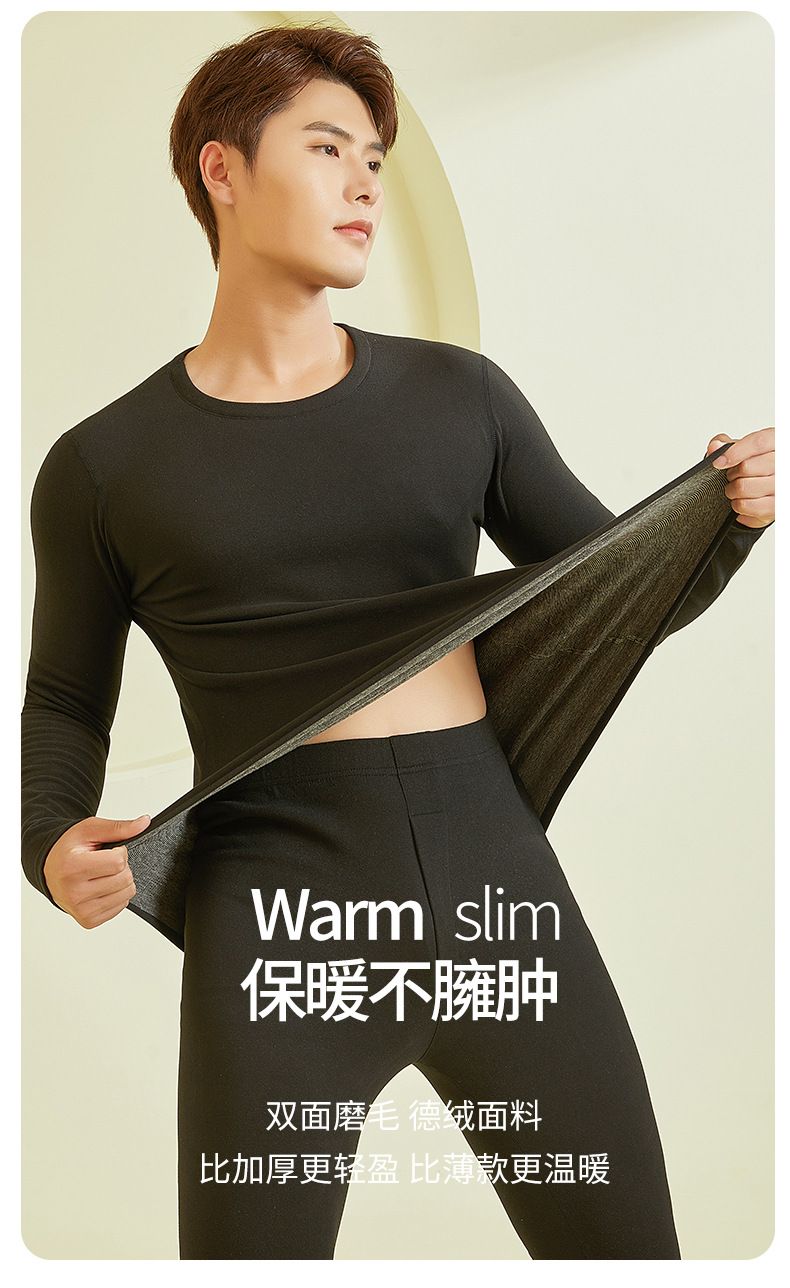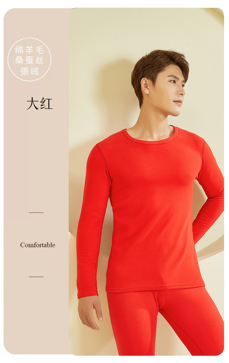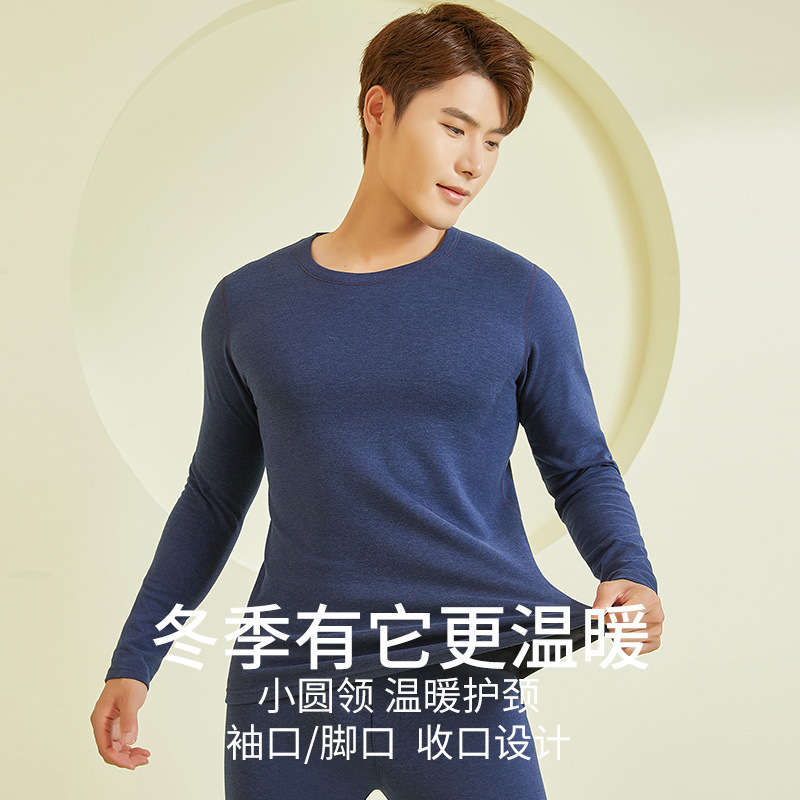 23年新款羊毛蚕丝包领保暖内衣男款秋冬秋衣秋裤保暖打底套装批发