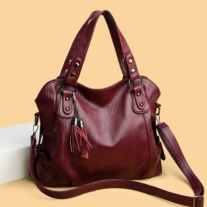 外贸经典款水洗羊皮流苏包质感好货中年女士大包包单肩包工厂现货