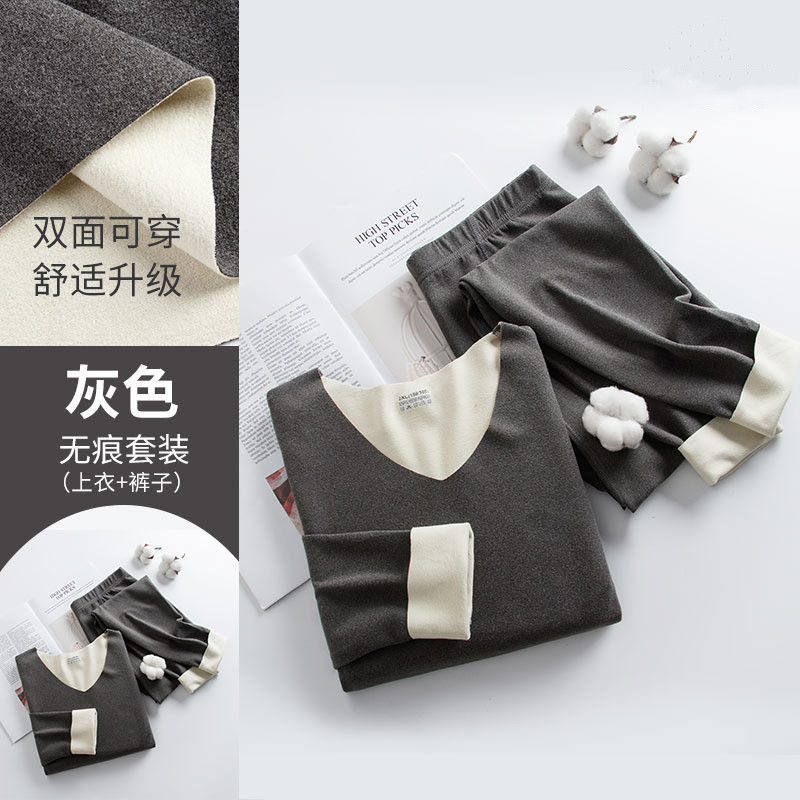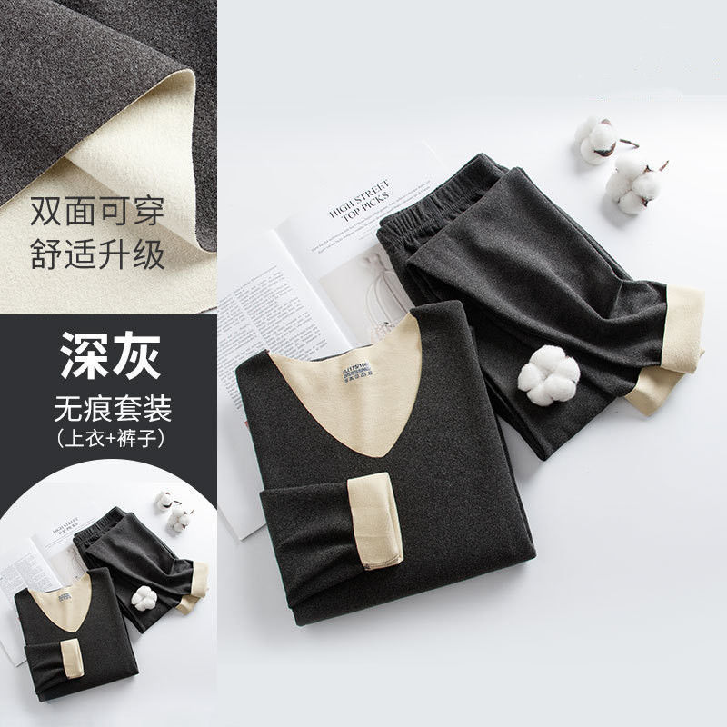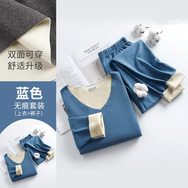 AB双面磨毛秋冬新款德绒保暖内衣男女修身无痕秋衣秋裤打底衫套装