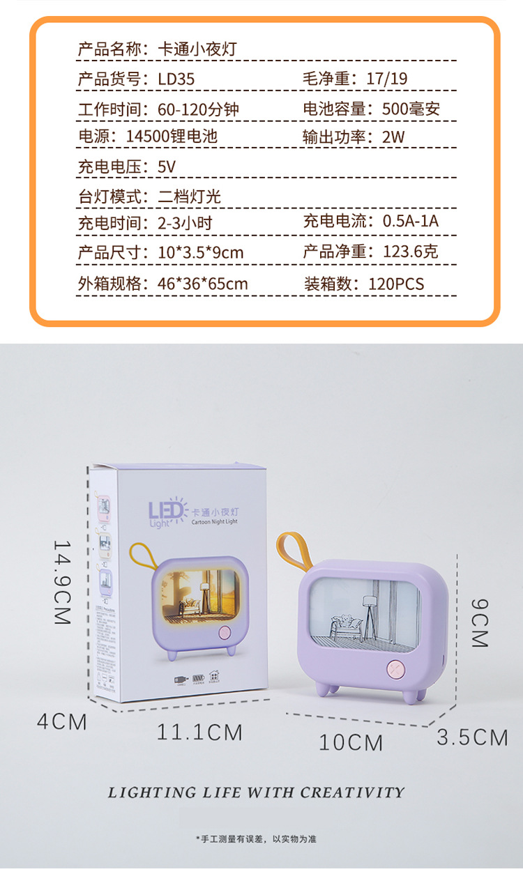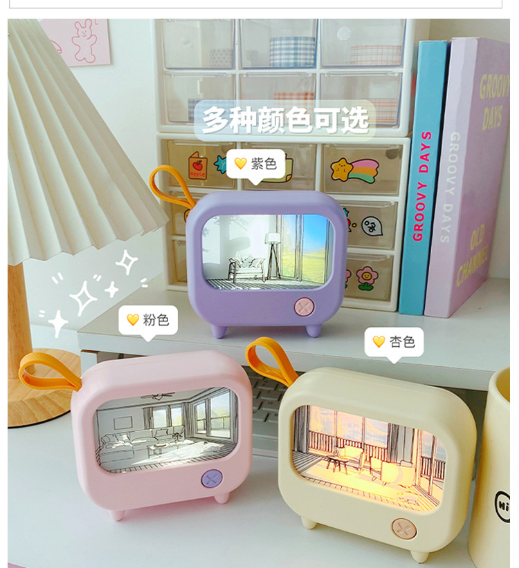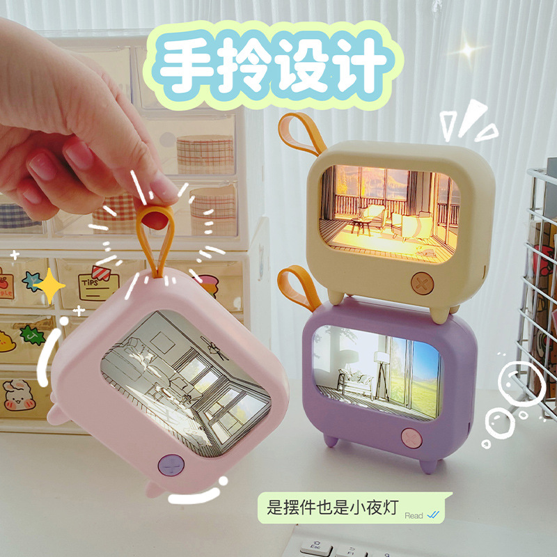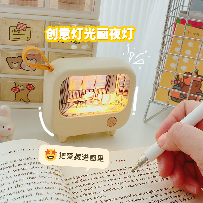 高颜值女生桌面迷你氛围暖光灯光画 学生二挡调光500毫安礼品夜灯
