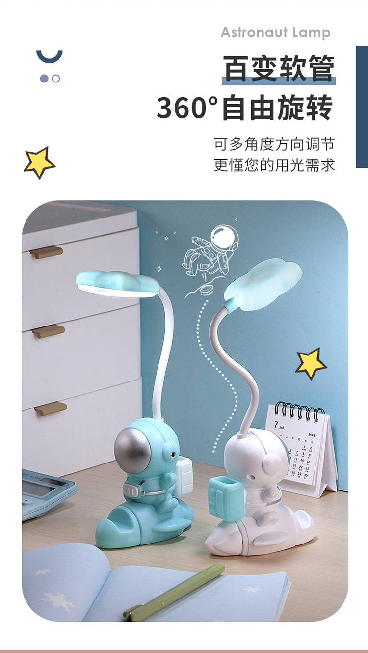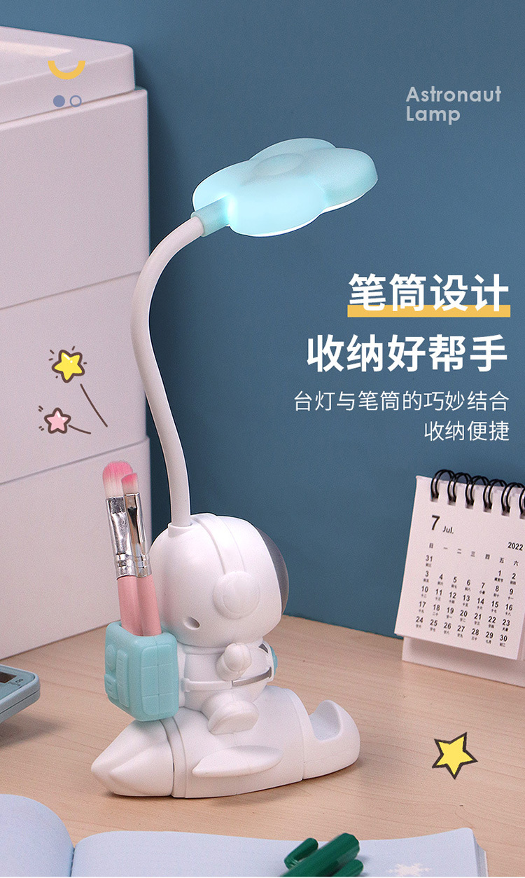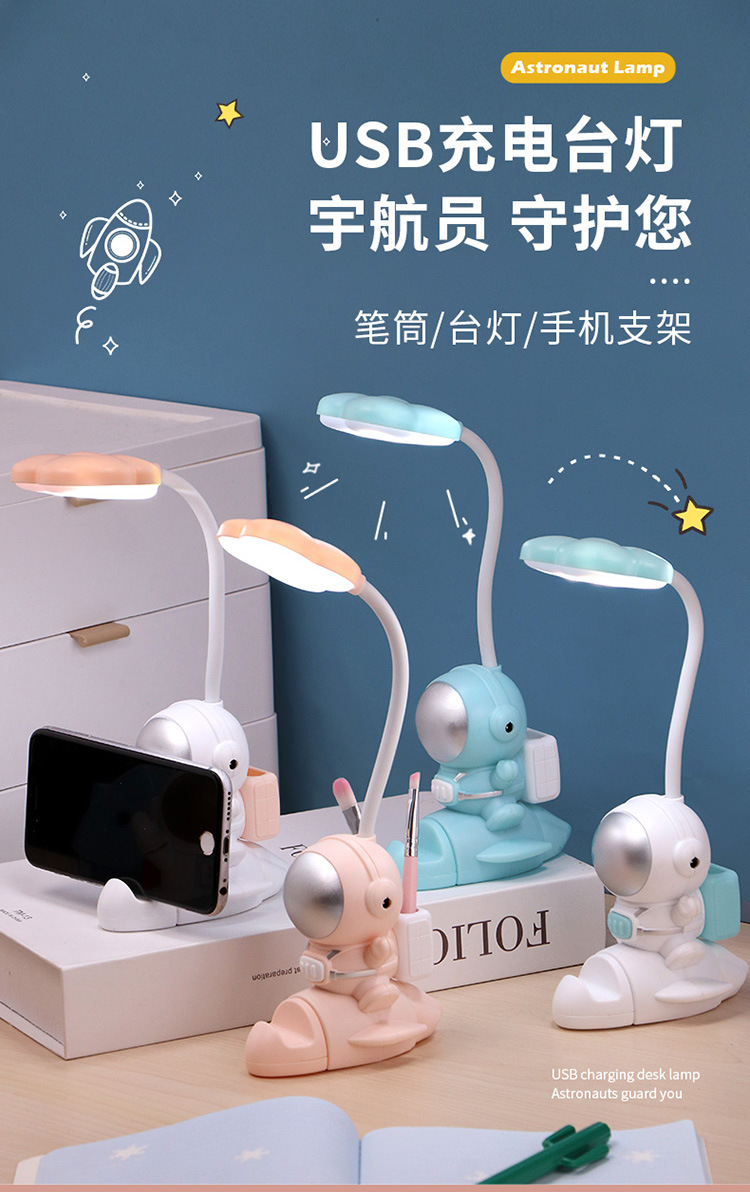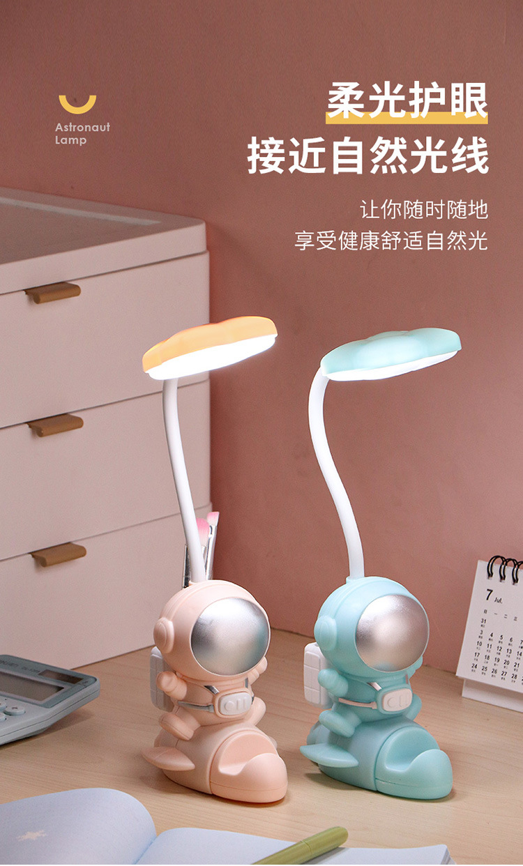 高颜值卡通儿童宇航员护眼LED笔筒台灯 手机支架创意usb充电台灯