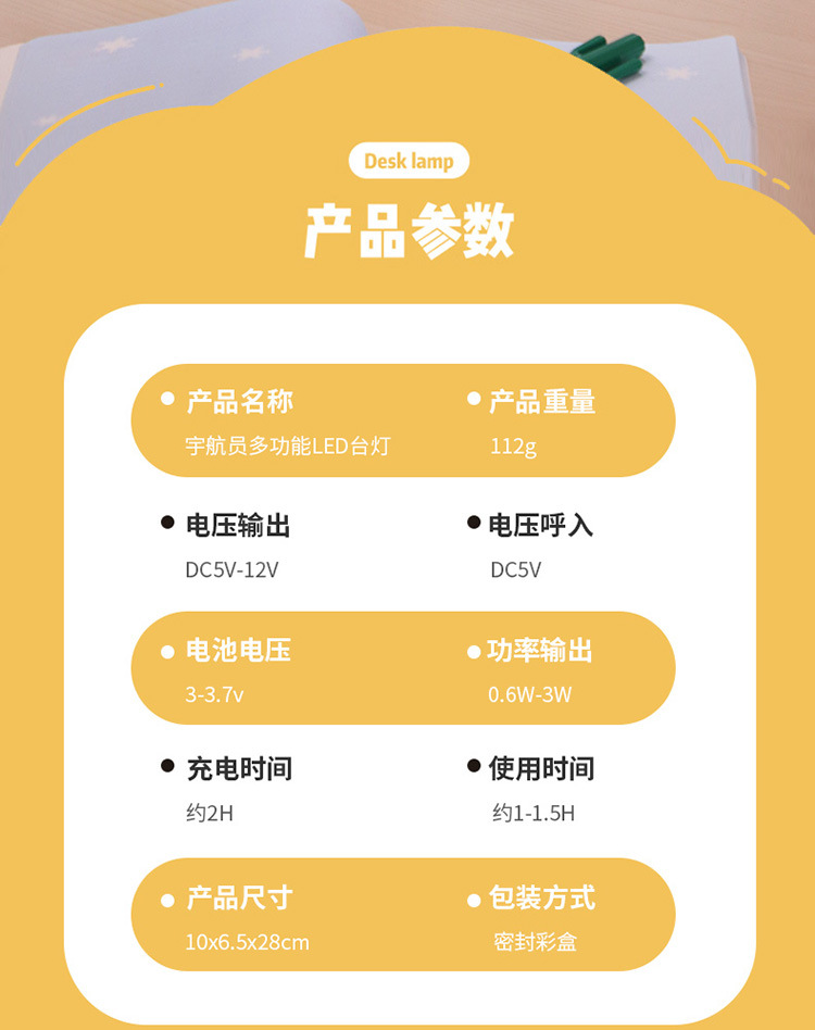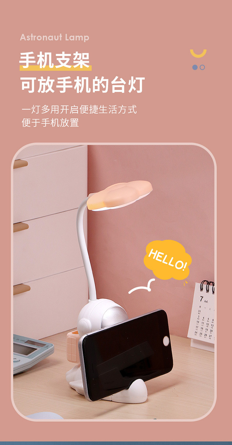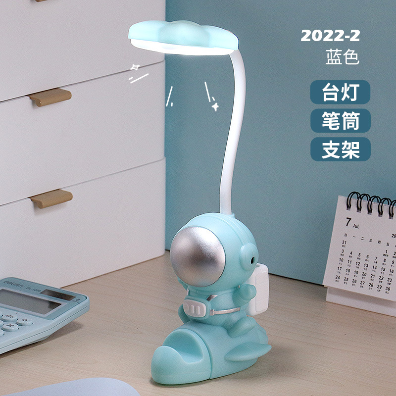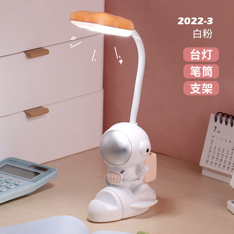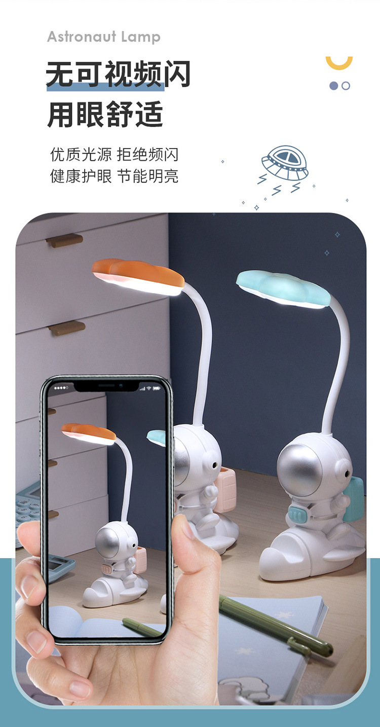 高颜值卡通儿童宇航员护眼LED笔筒台灯 手机支架创意usb充电台灯