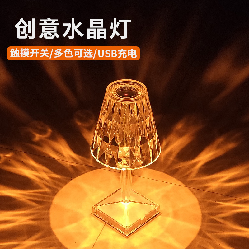 跨境玫瑰水晶钻石台灯卧室床头装饰钻石台灯触摸网红爆款小夜灯