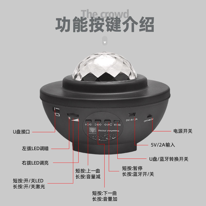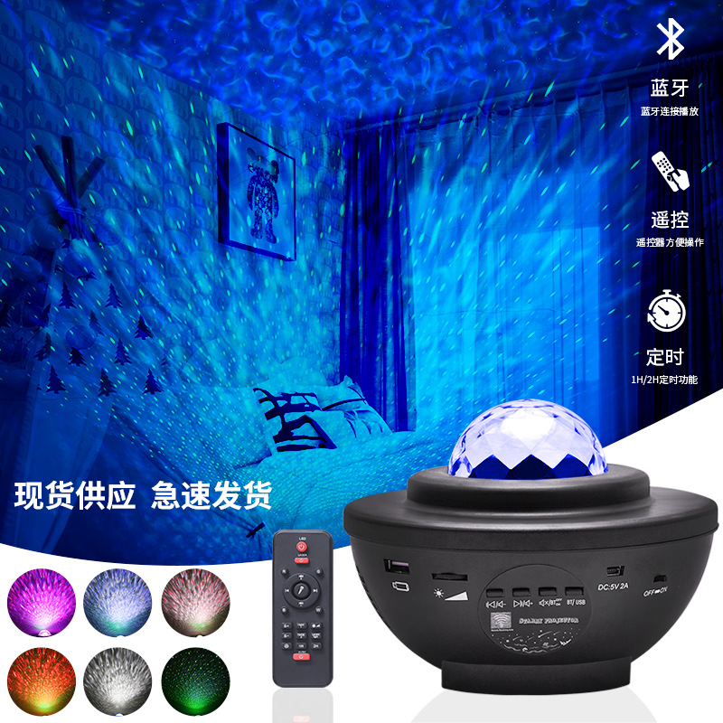 跨境货源星空投影灯 USB蓝牙音乐氛围灯满天星全彩水纹LED小夜灯