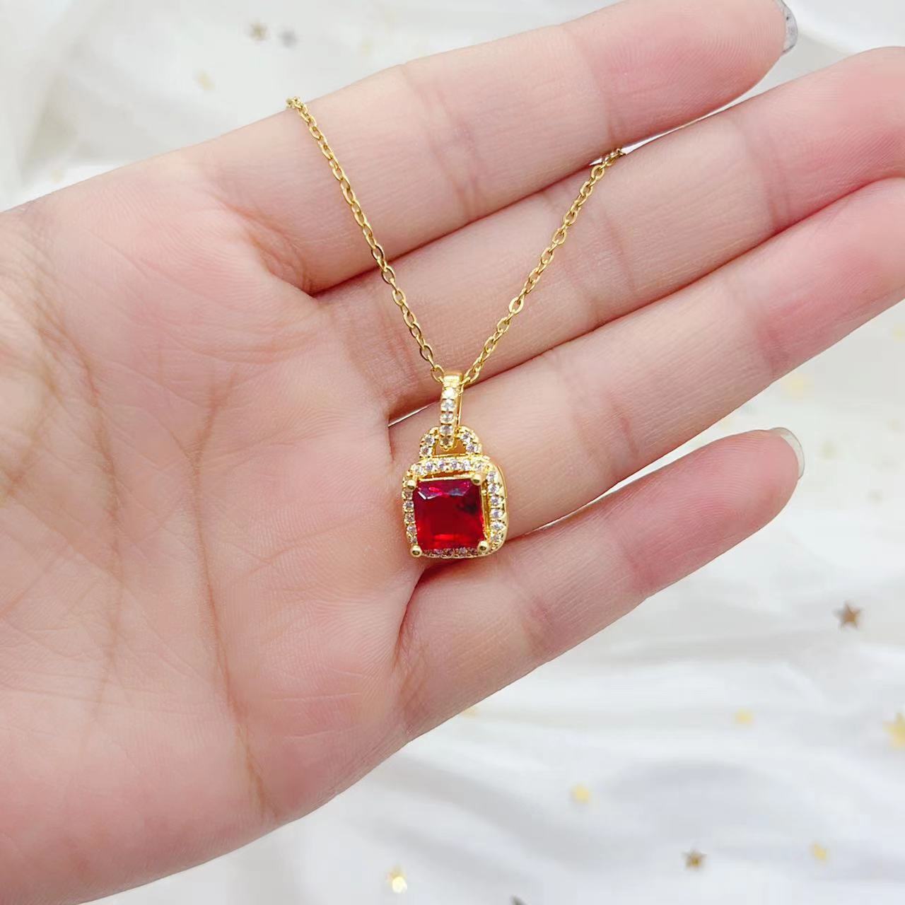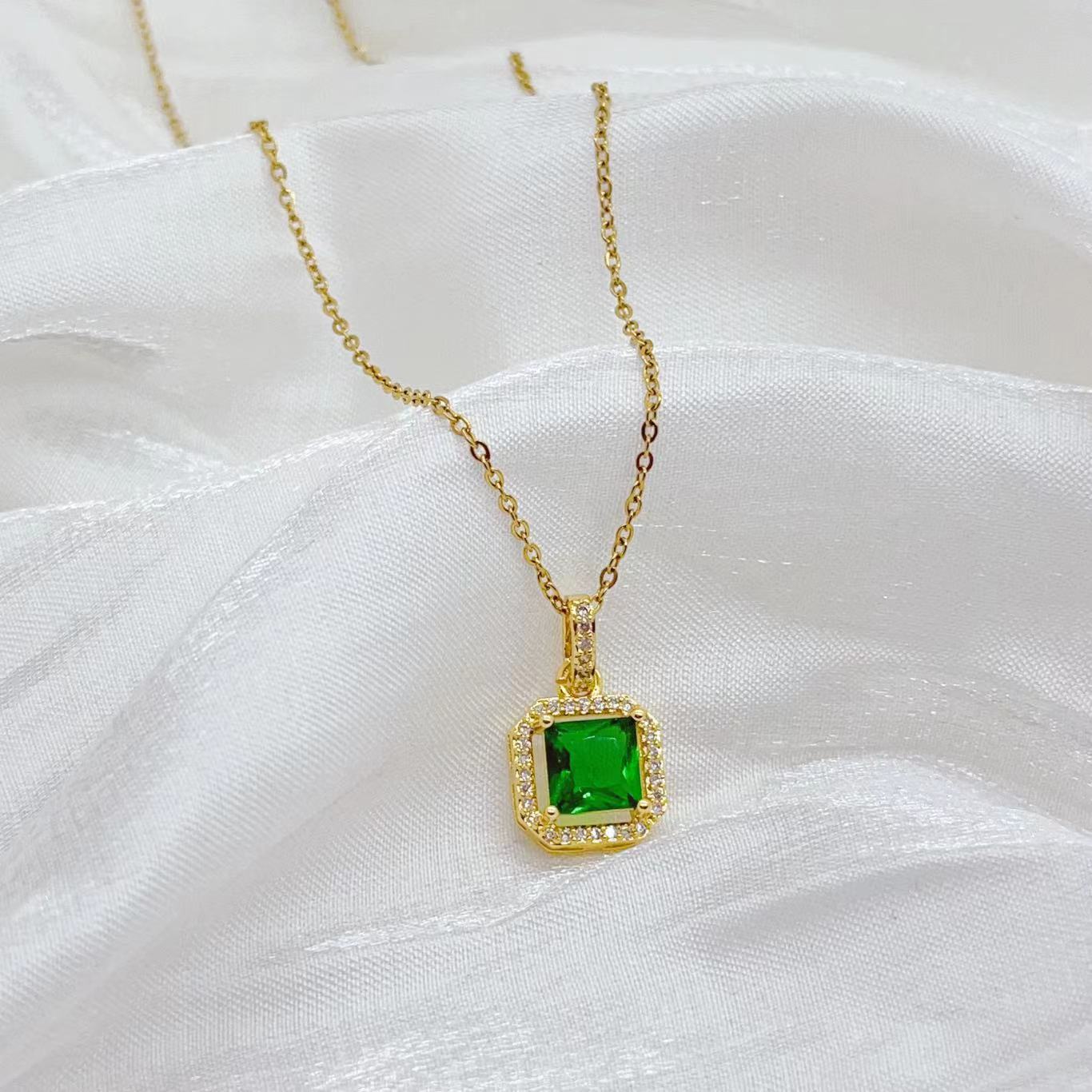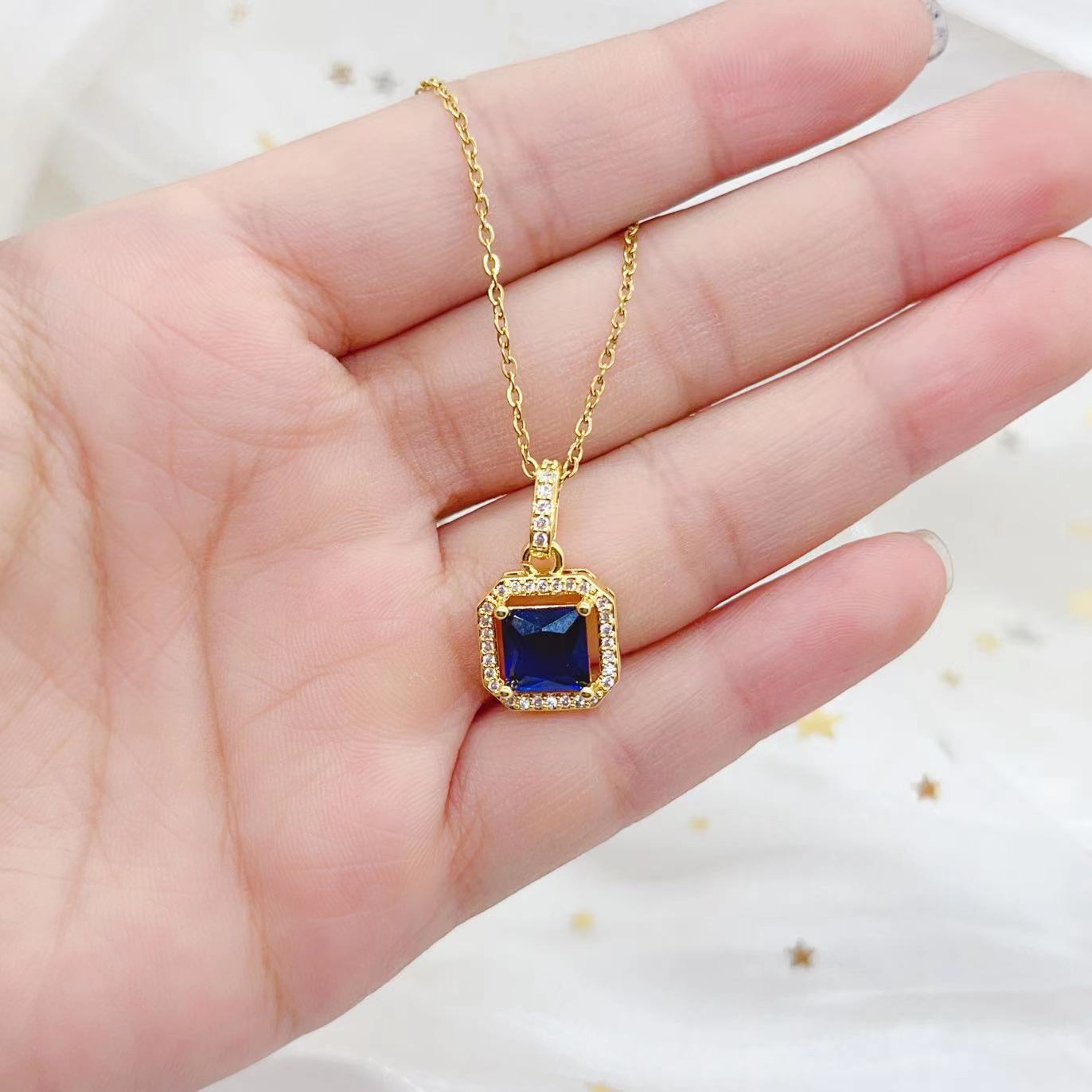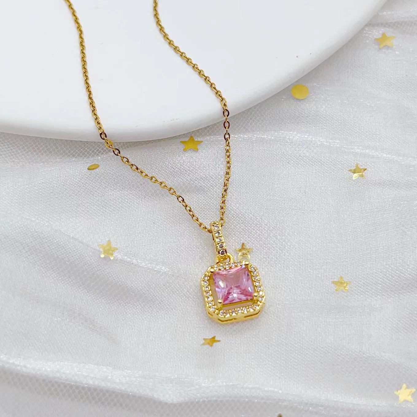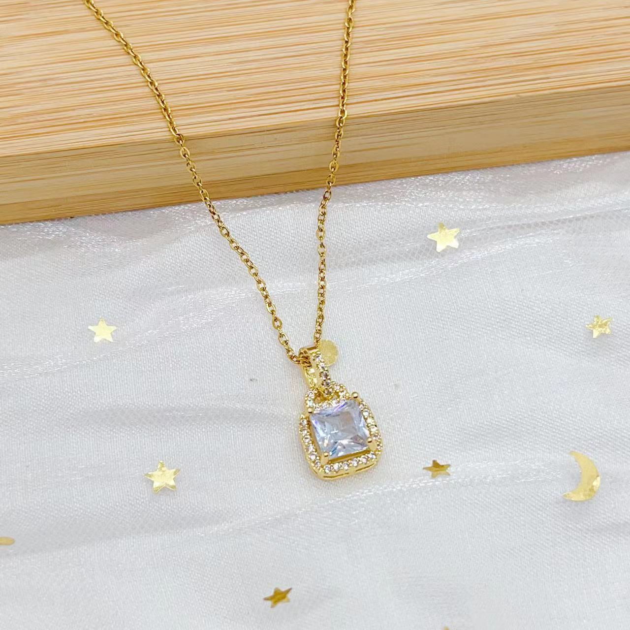 几何方形微镶锆石气质款精致锁骨链个性设计感正方项链女时尚饰品