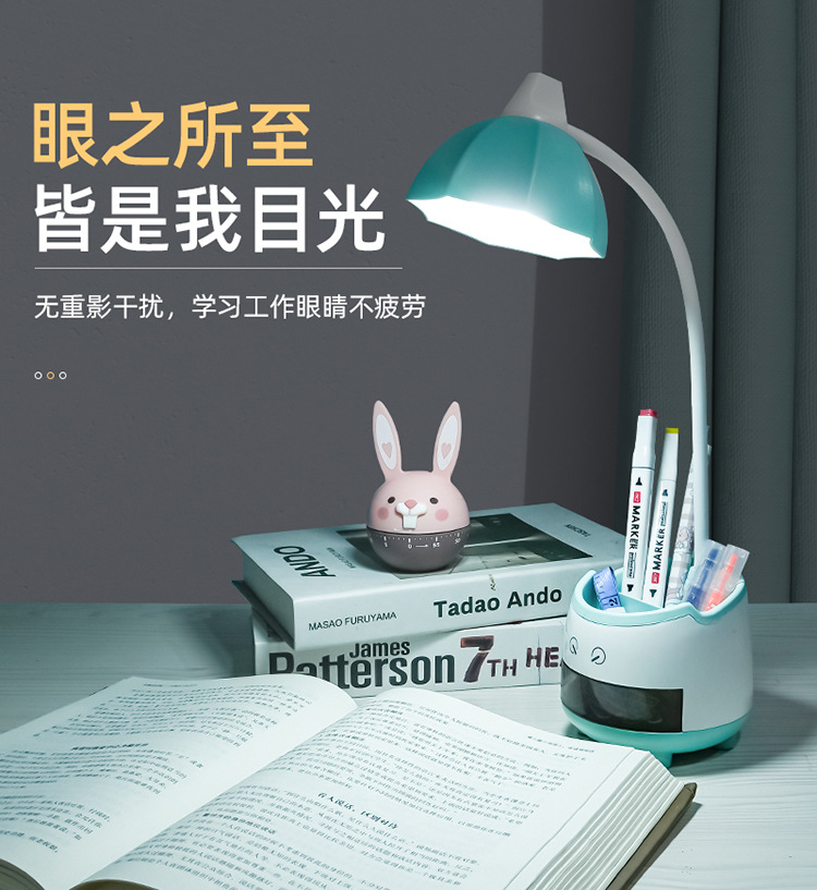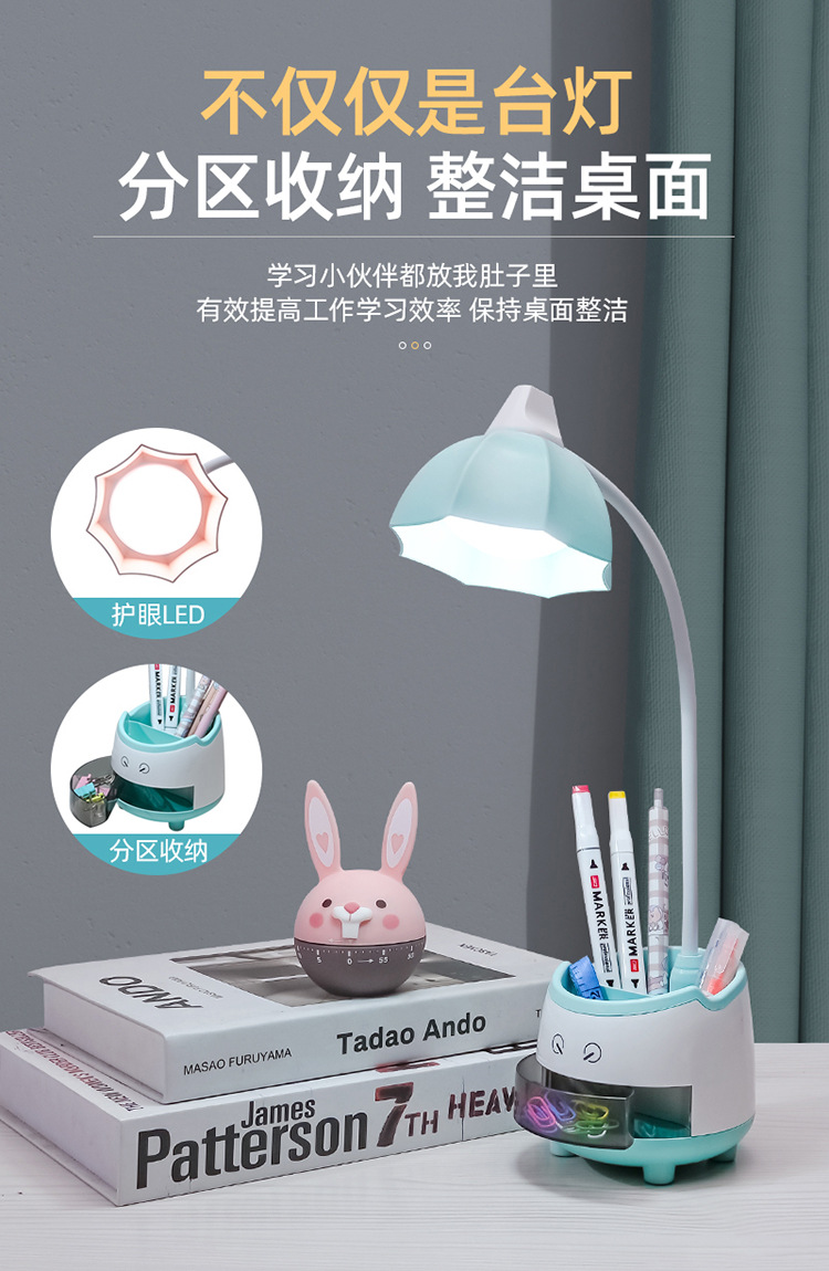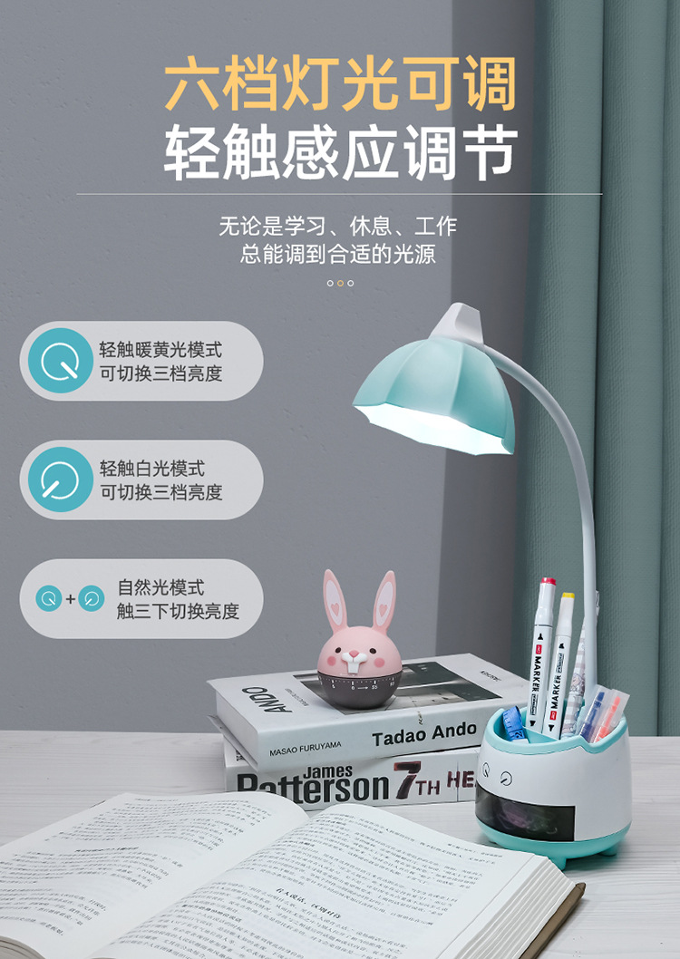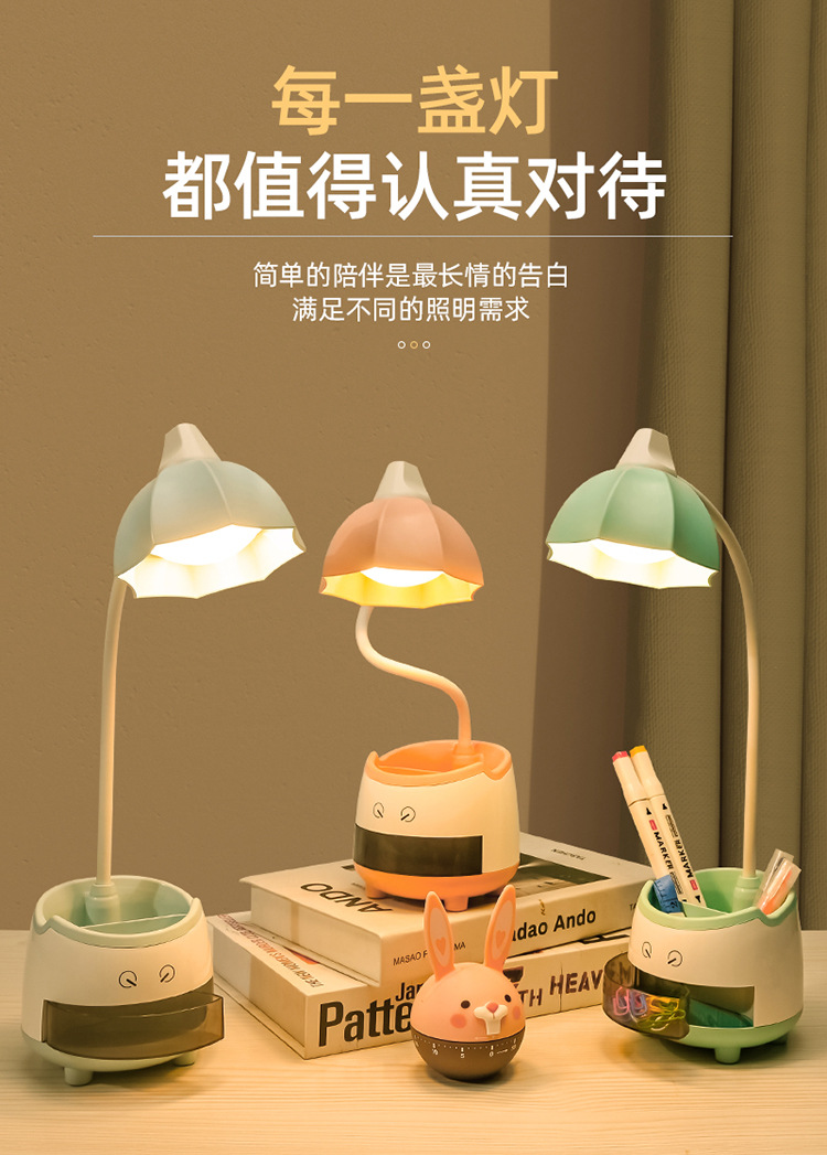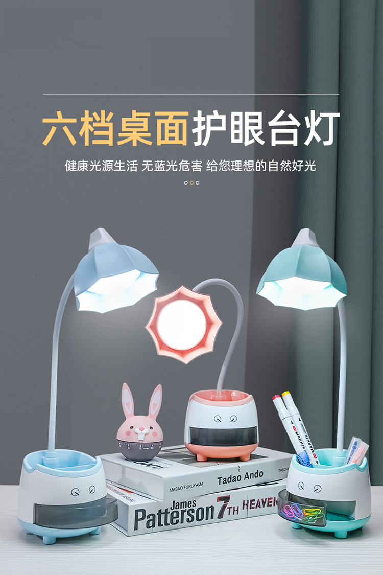 大容量usb充电桌面台式花朵网罩护眼台灯 六档触摸调光笔筒台灯