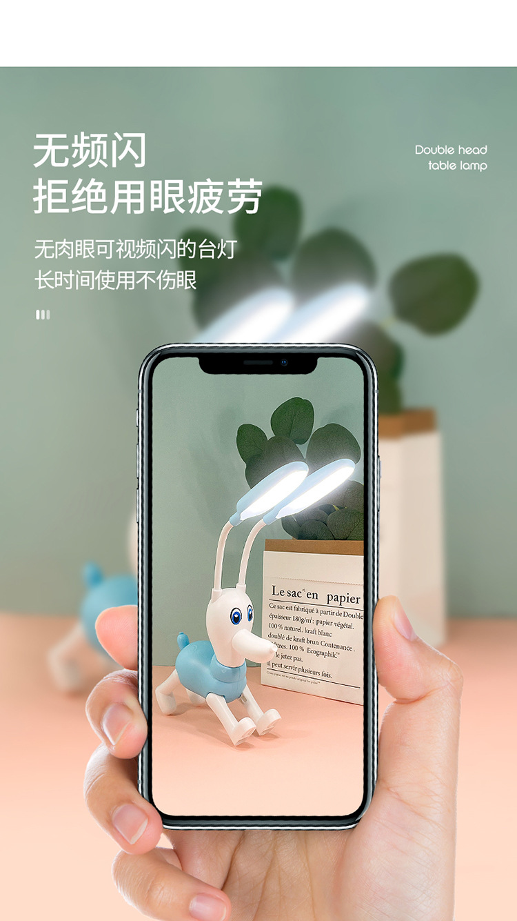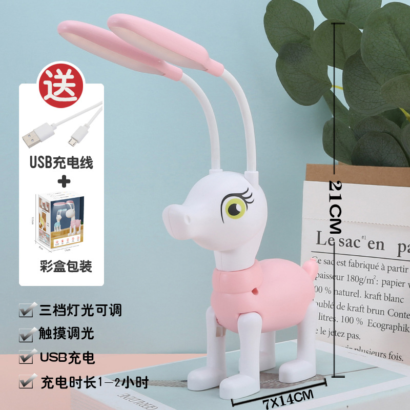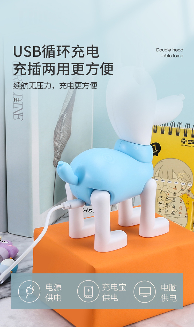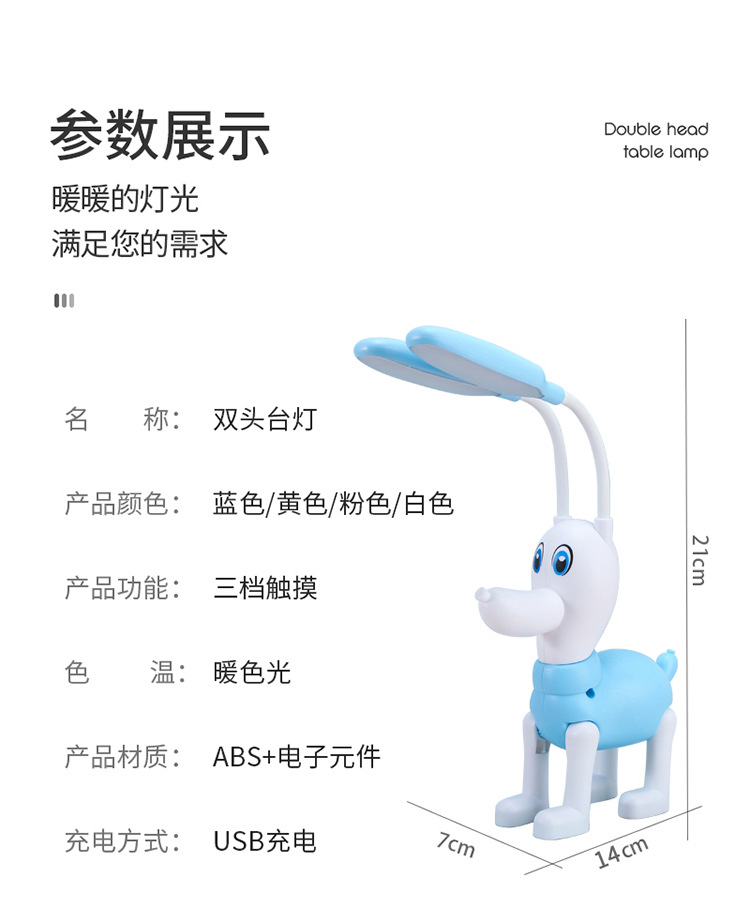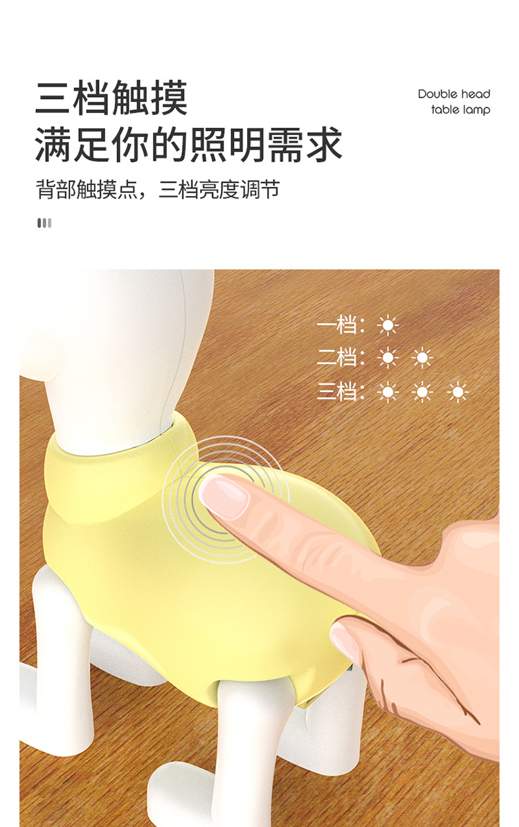 可爱卡通儿童萌萌哒双头usb充电台灯 三档触摸调光家用迷你小夜灯