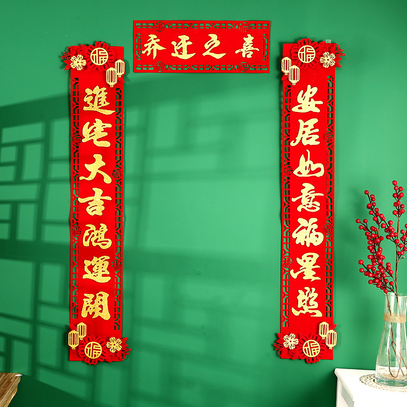 烫金植绒布对联乔迁之喜2023乔迁新居对联新房子门联厂家现货批发