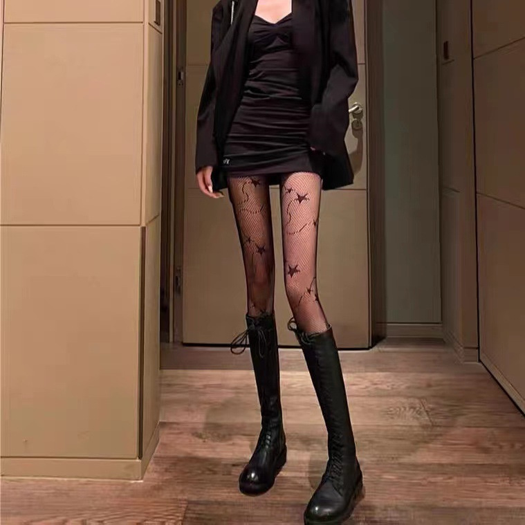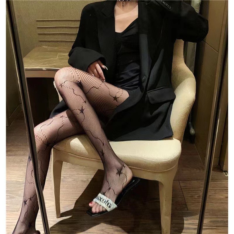 黑丝网袜闪钻袜女薄款黑色is蹦迪袜网红字母渔带钻石连裤袜子批发