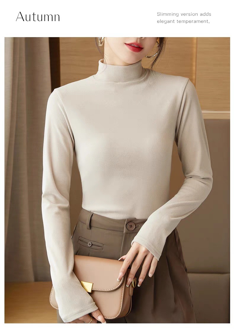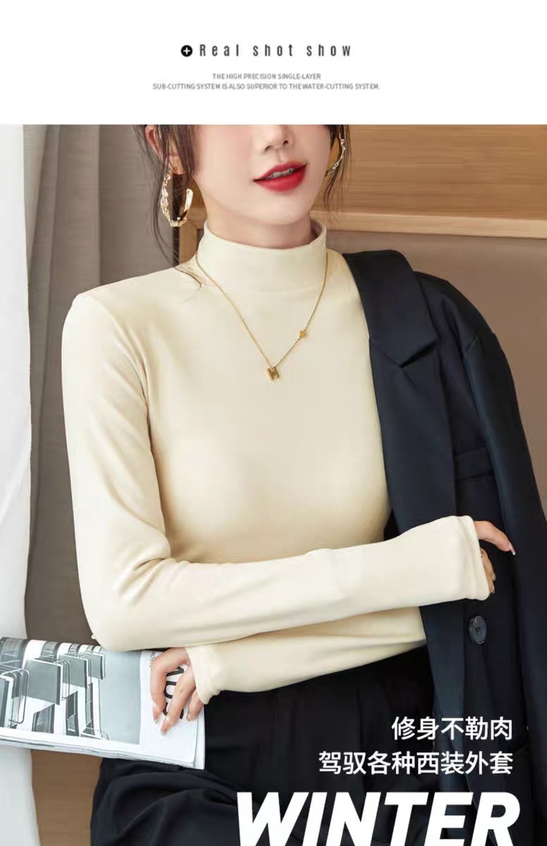 女秋冬季德绒半高领打底衫洋气内搭修身长袖加绒黑色肌底上衣工厂