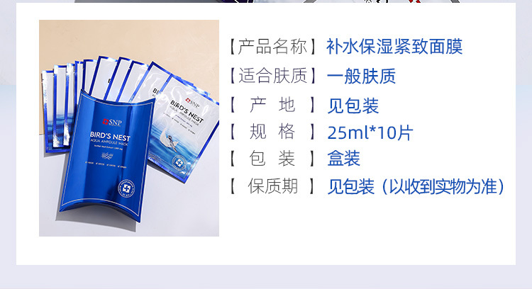 SNP海洋燕窝水库面膜10片补保水湿收毛缩孔 面膜提肤亮色