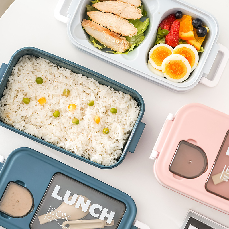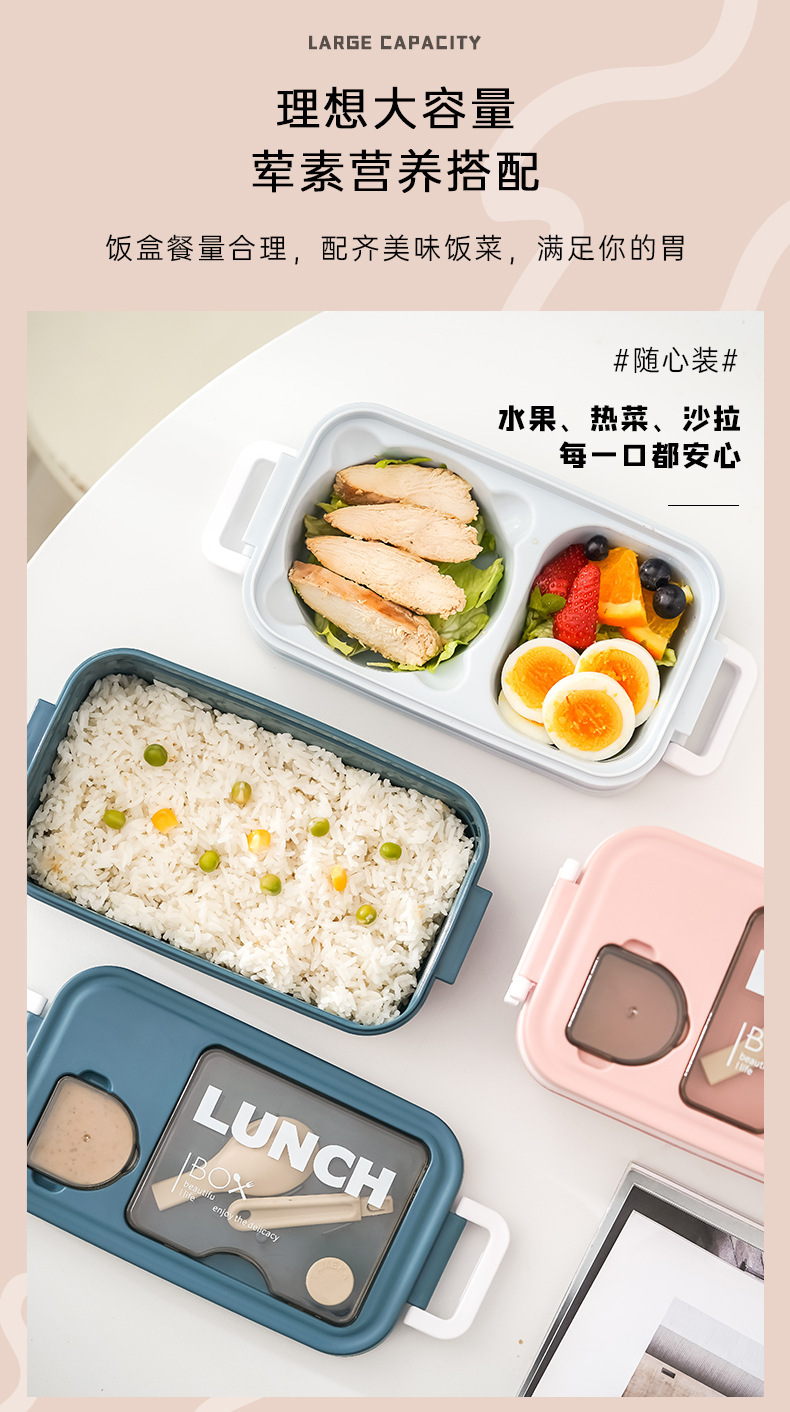 INS日式轻食双层饭盒塑料分格便当盒跨境成人学生可微波炉午餐盒