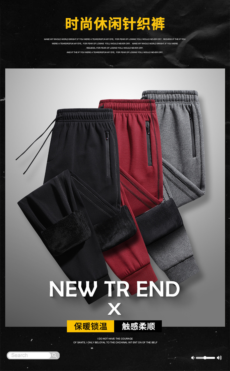 加绒裤子男冬季超柔绒加厚保暖长裤直筒宽松休闲裤百搭束脚卫裤男