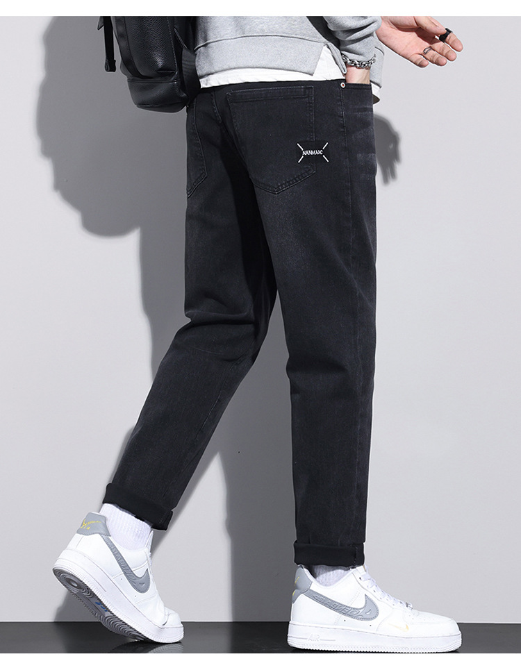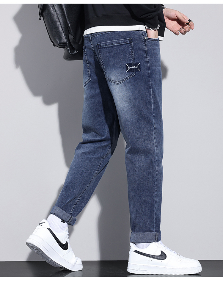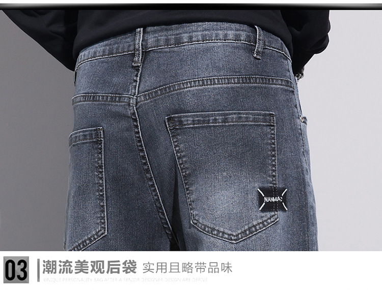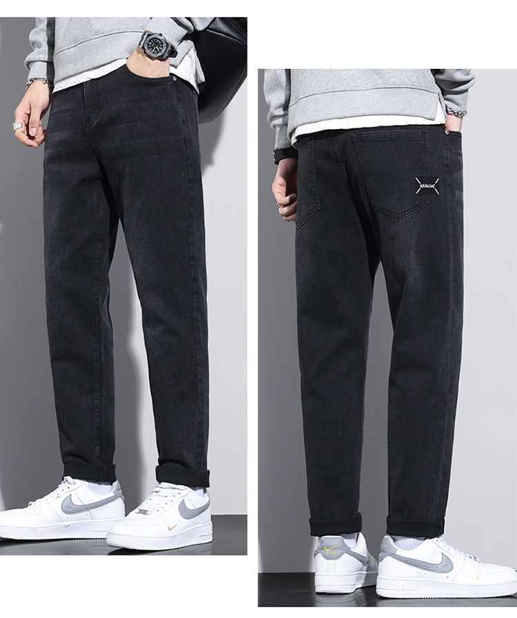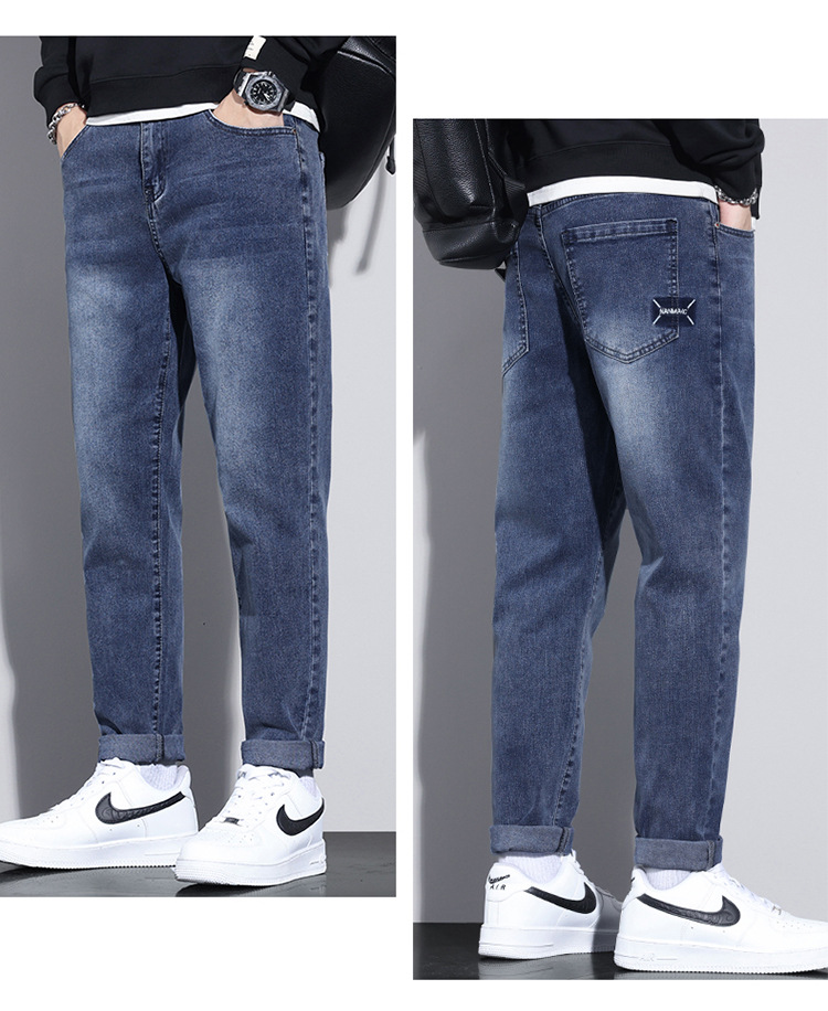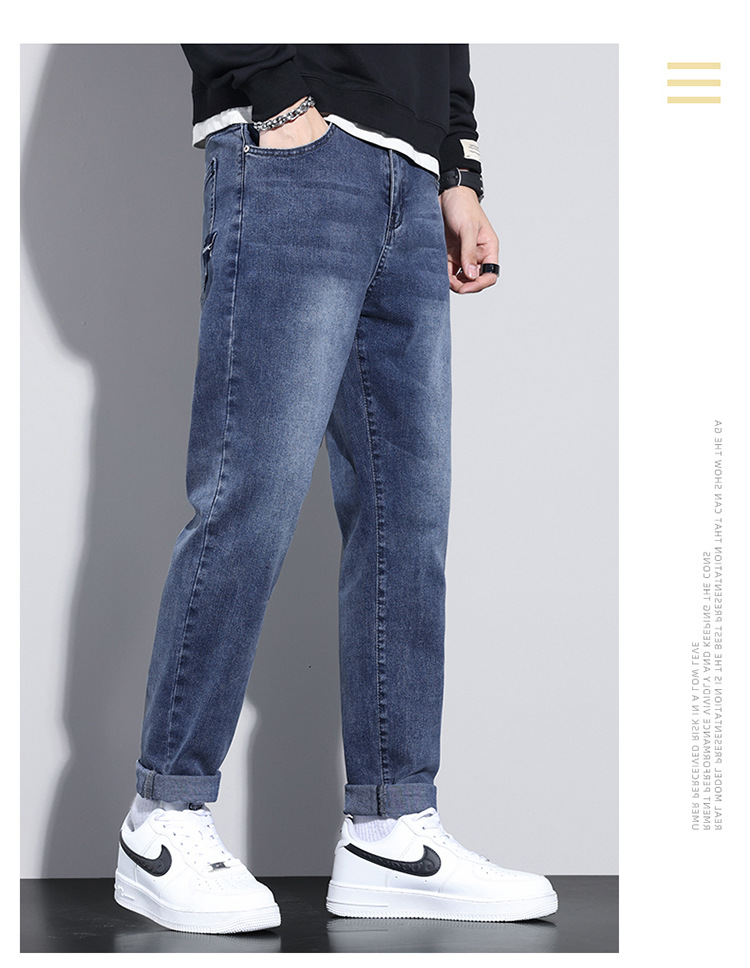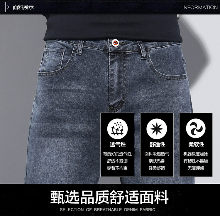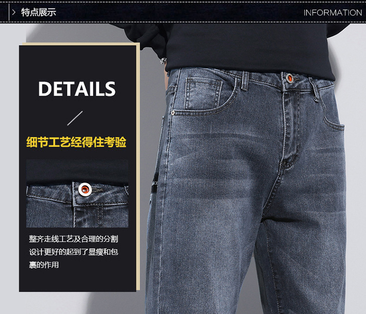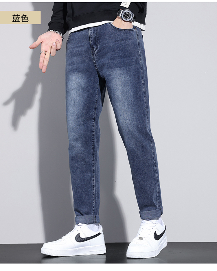 牛仔裤男士冬季高档弹力休闲宽松小直筒长裤 男生韩版潮流新款