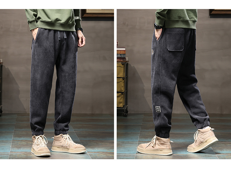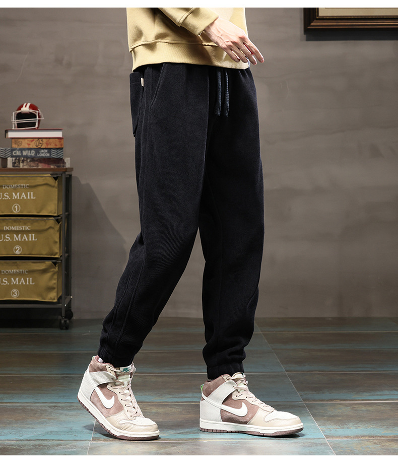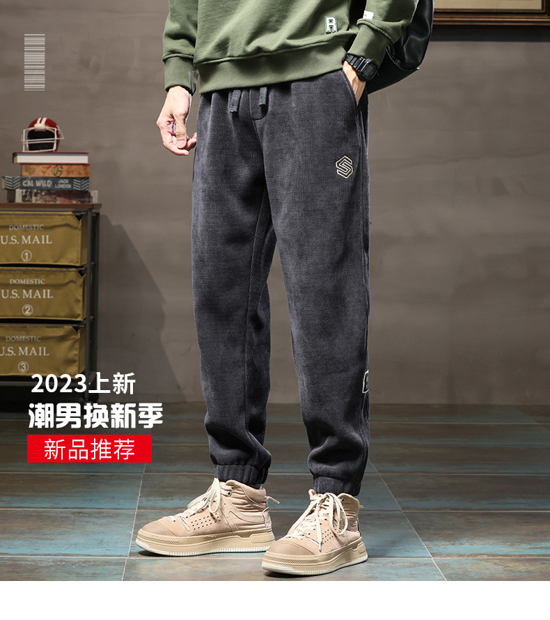 休闲裤男士秋冬款宽松束脚博奥绒长裤2023新款冬季潮牌运动裤子