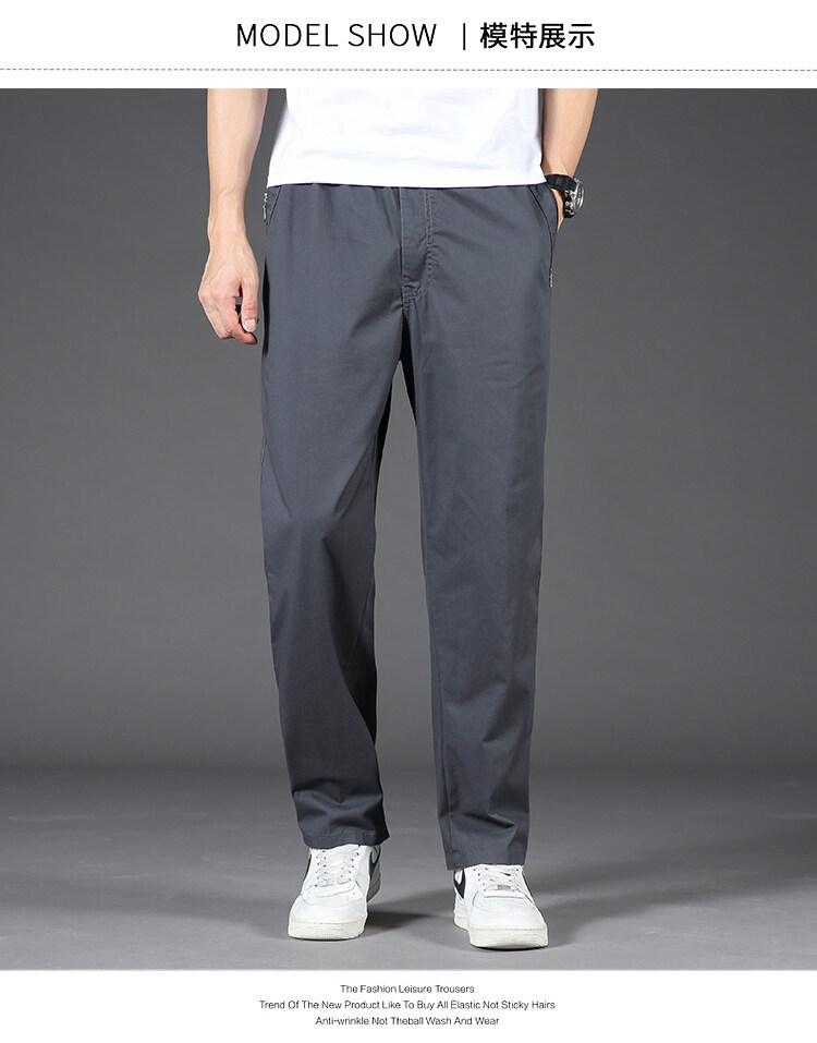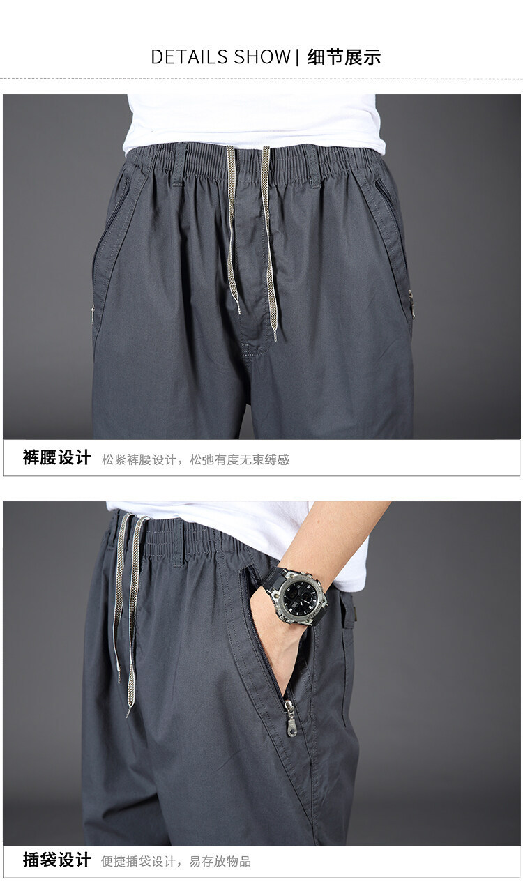 加绒加厚爸爸装松紧腰纯棉直筒裤子秋冬季中年男士休闲长裤老年人