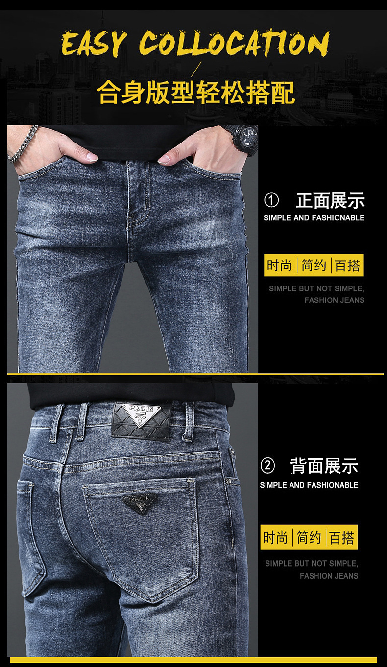 牛仔裤男士韩版秋冬厚款轻奢品牌高端修身直筒弹力休闲长裤子批发