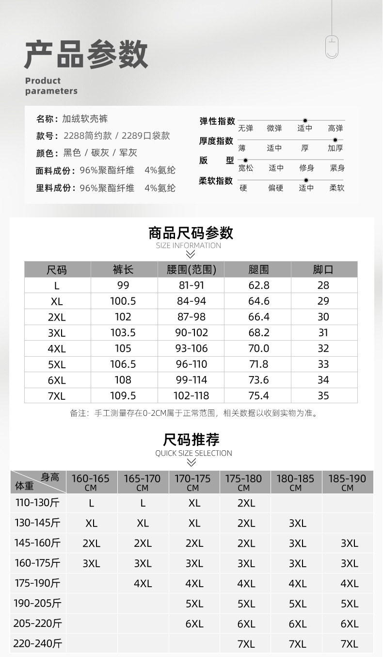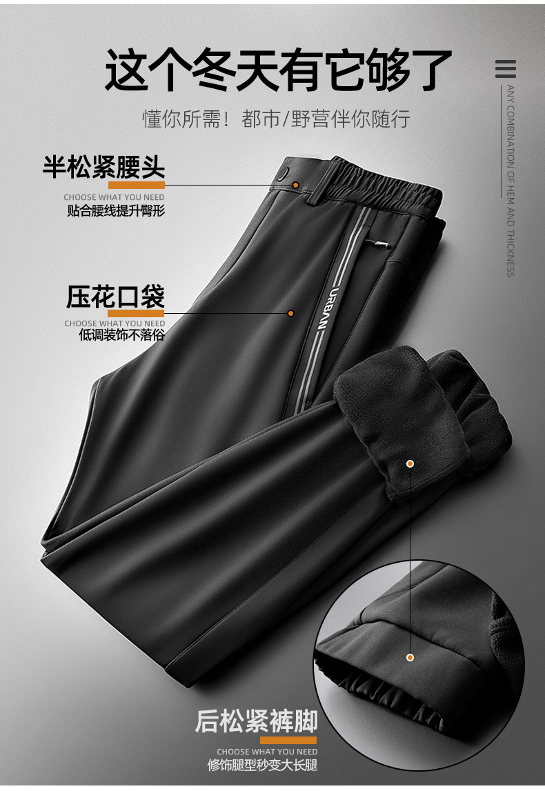 休闲裤男士冬季加绒加厚宽松大码软壳裤子防风防水露营长裤束脚裤