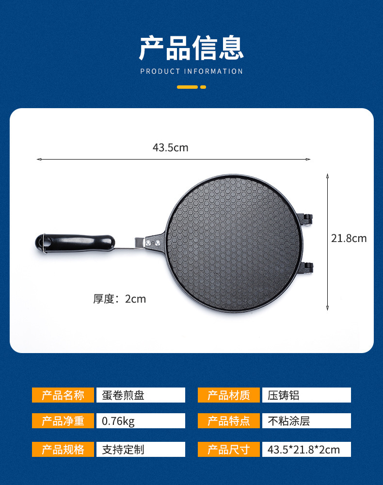 厂家直供压铸铝蛋卷煎盘冰激凌甜筒脆皮蛋卷机家用早餐烘焙模具