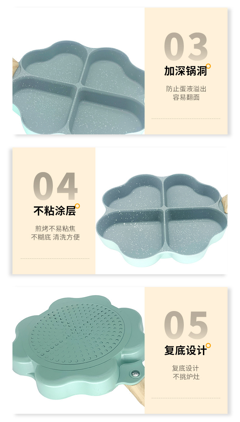 爱心四孔煎蛋锅 电磁炉通用四叶草汉堡锅 早餐煎锅迷你煎锅热卖款