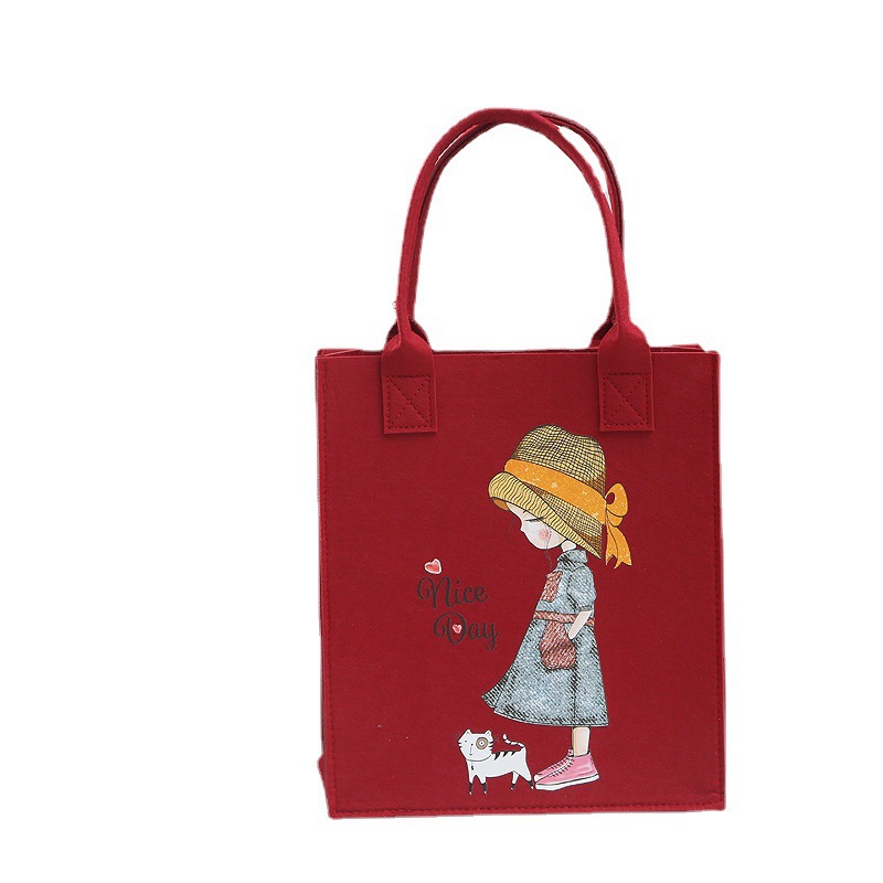 2023新款卡通可爱毛毡包 逛街手提包商场购物袋 学生补习袋厂家