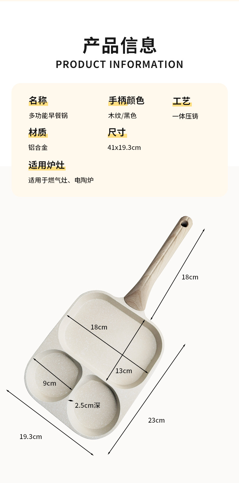 三合一早餐锅煎蛋堡煎鸡蛋汉堡锅平底锅不粘锅家用煎饼锅牛排煎锅
